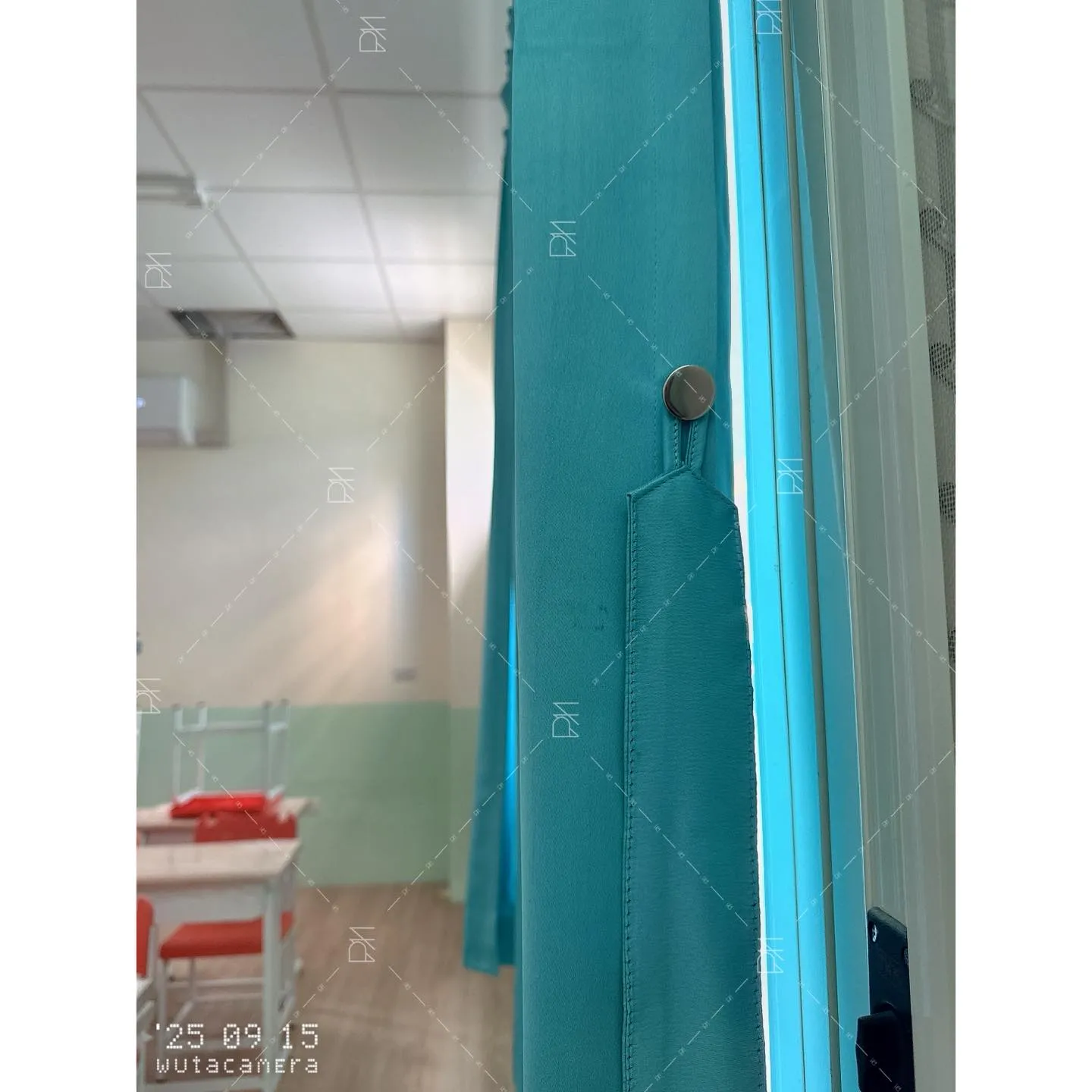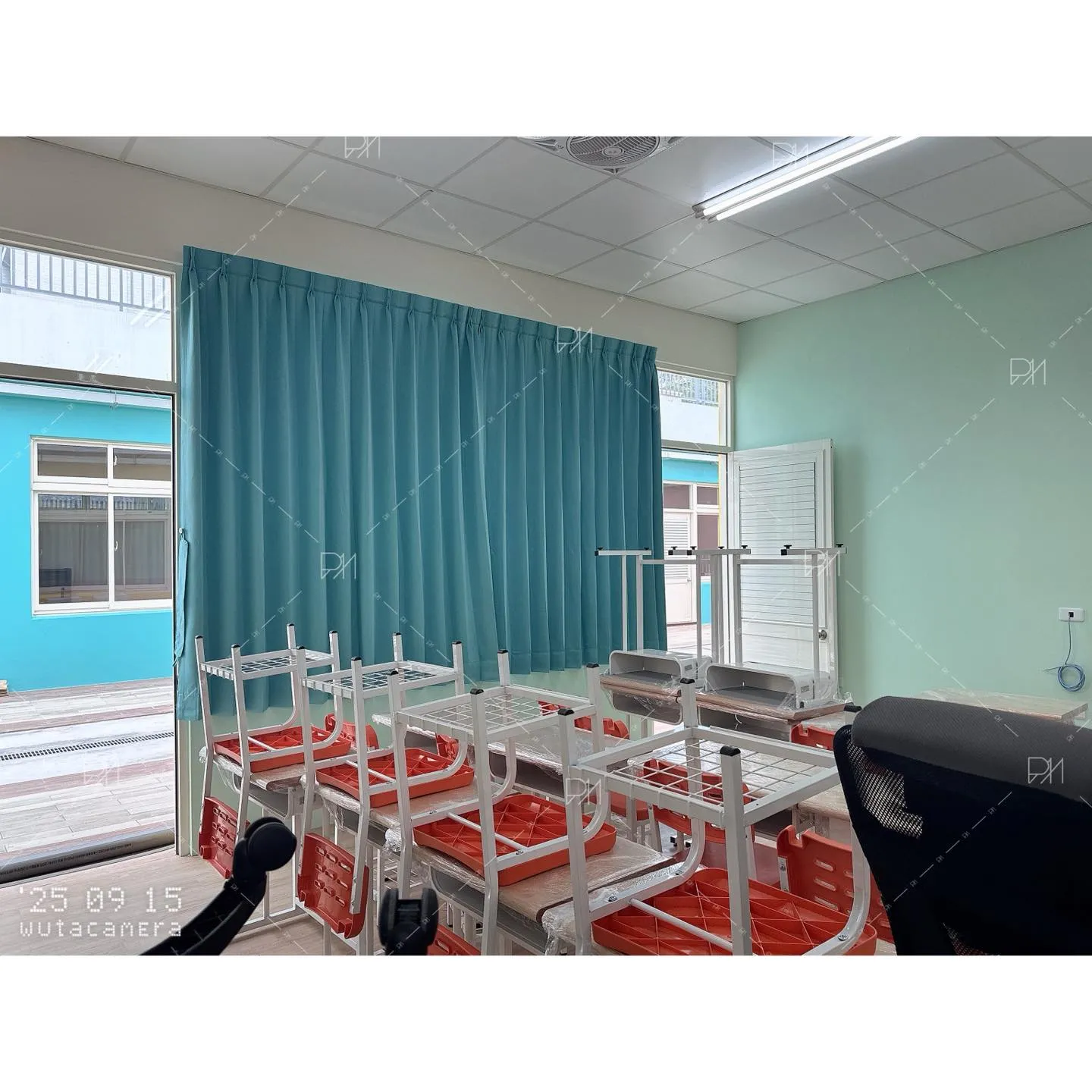 教室空間:海洋藍遮光防火布簾色調沉穩舒心,營造安靜、放鬆的學習氛圍。