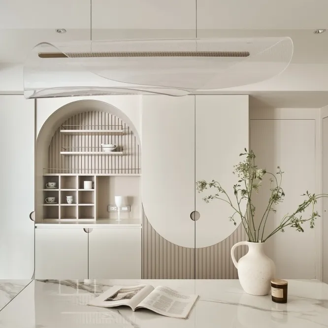 在空間設計中,收納櫃的配置不僅影響實用性,也會直接影響整體的視覺感受。全封閉的櫃子雖然能夠隱藏雜物,但過於密實的立面會讓空間顯得沉重壓迫;相反地,如果全部都採開放式設計,又容易產生雜亂的視覺效果。因此,適度地混搭封閉與開放式收納是一種很好的平衡方式。可以在櫃體中加入玻璃門、層架或半高櫃等元素,展示書籍、植物或藝術品,既有生活感,也能營造輕盈的視覺節奏。這種有層次的設計,讓收納不再只是功能性的存在,而成為空間美感的一部分,達到整齊與美觀兼具的理想效果。