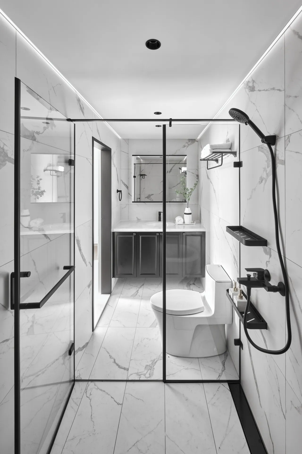 •地面:選用止滑、防水效果佳的瓷磚,並保持良好排水坡度。