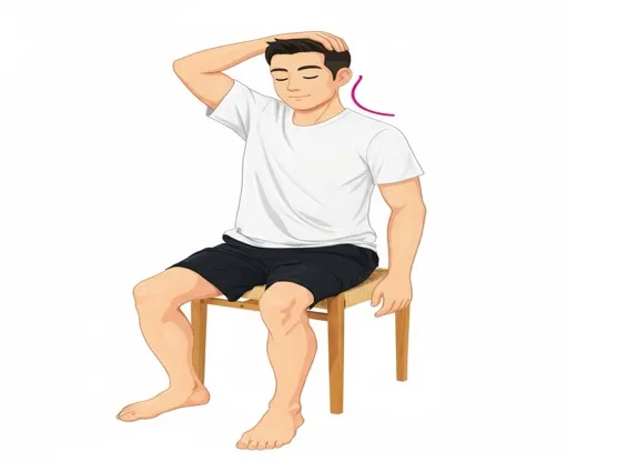 也能進行「頸部側伸展」:頭部輕往一側傾,維持10秒放鬆頸部肌群。