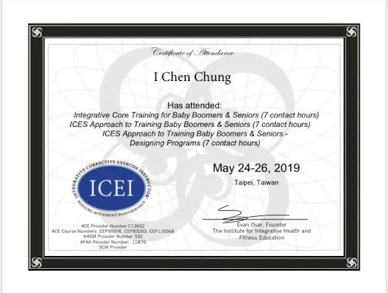 2019年考取證照 - I.C.E.I 矯正運動評估與調整