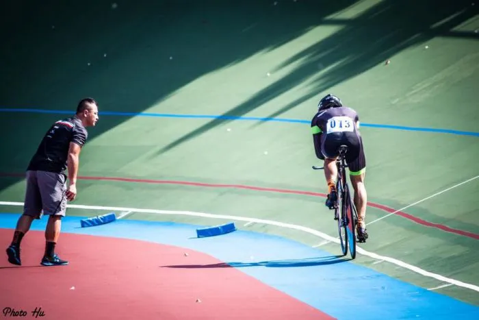 結束課表後的日子,他沒有把強度拉太高,再加上工作繁忙,週六跟申騰自行車隊一起練,週日跟民間車隊,一週約兩天的長途公路,平日就在店裡踩訓練台,比賽前兩週才開始練場地,整體訓練量連現役選手的一半都不到。
