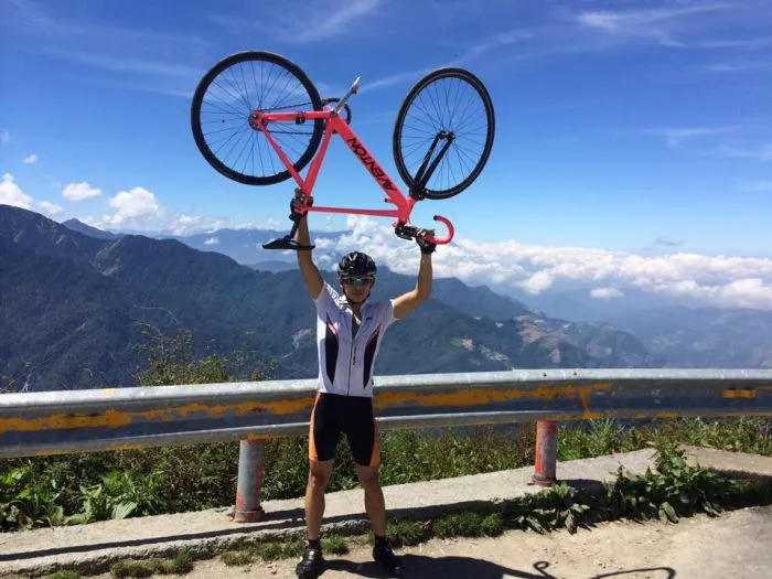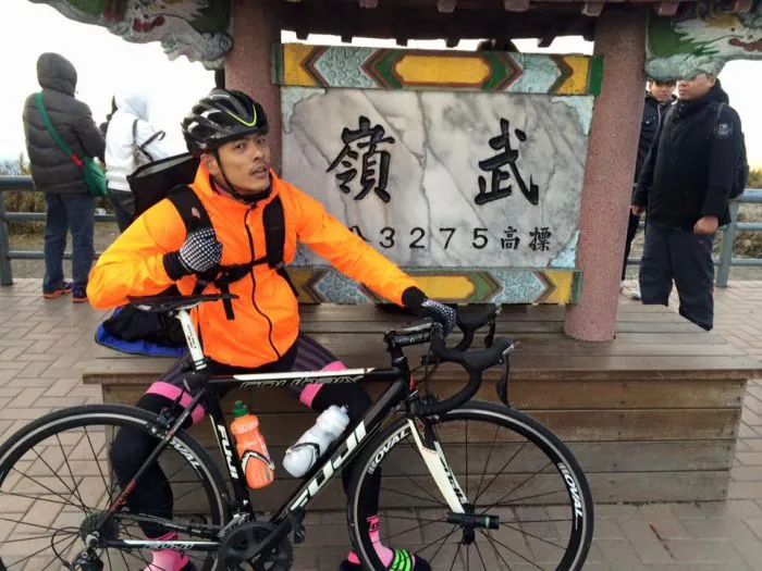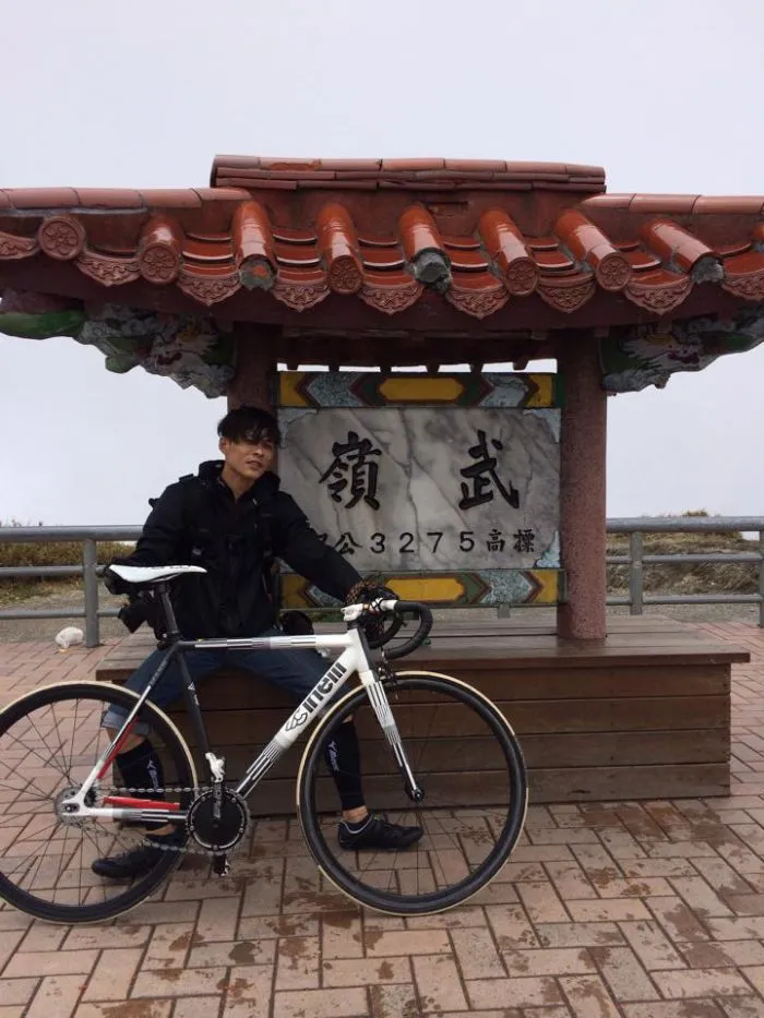 三十歲之後才開始接觸單車,在2014年以單速車騎上武嶺之前,完全沒有特別練,「連訓練台都沒有,只有單純往陽明山、文化大學、中社、風櫃嘴等路線街騎。」