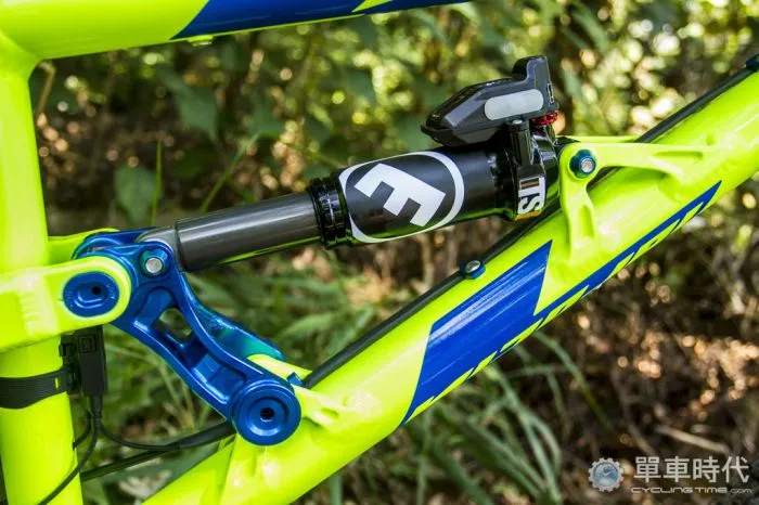 最有趣的這組前後智能避震器就好像裝了一顆機器人的頭腦在裡面一樣,它們能夠感受到你從高度上跳下來,在下來的那0.6秒的瞬間轉換成自動鎖死。如果是騎到準備要飛出去的那一刻,又能自動解除鎖死系統。