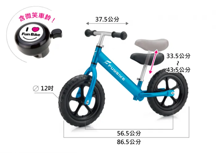市面上有一款經過很多部落客媽咪親推的Push Bike,來自育嬰用品店推出的台灣品牌,還有團購、網店的通路,叫做FUNBIKE。打著「全世界最輕」、「只有1.9公斤」的名號闖遍親子界,加上很炫的雷射光澤塗裝讓花錢的家長愛不釋手,限重35公斤以下,選用免充氣的實心胎,較適合小小孩騎乘。(網購價$4999)