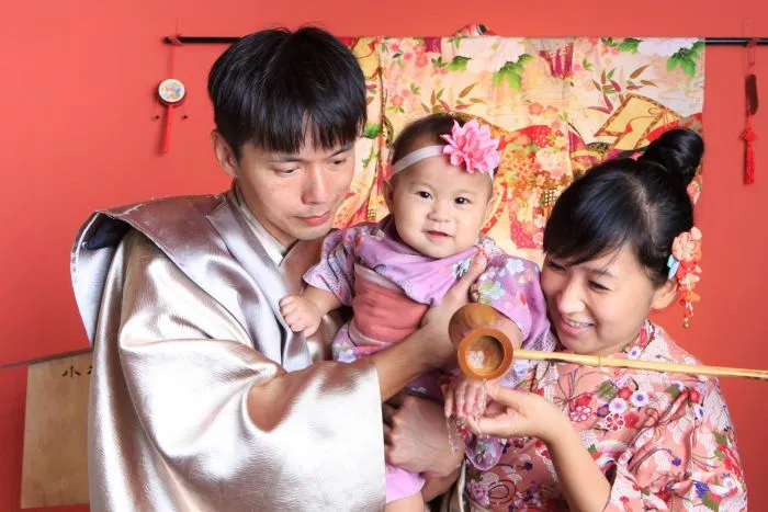 吳秉聰與太太和滿周歲女兒的抓周紀念照。育有一男一女的吳秉聰目前最重視孩子的教育 / 圖片提供:吳秉聰