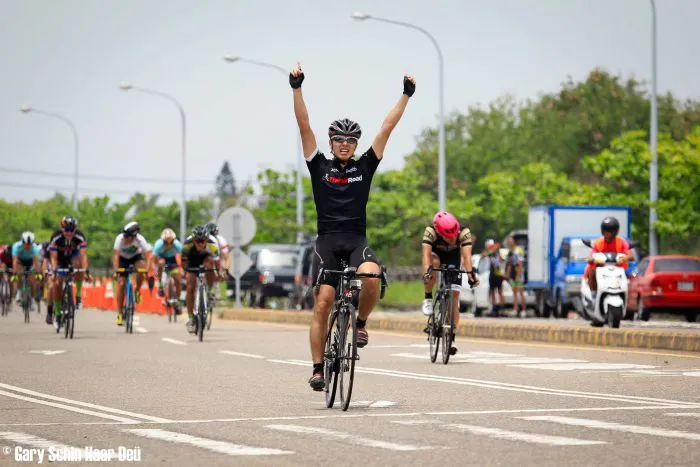 進終點之前,吳秉聰想好了勝利手勢讓攝影師捕捉這一刻 / ©Gary Schin Haar Deu 圖片提供:吳秉聰