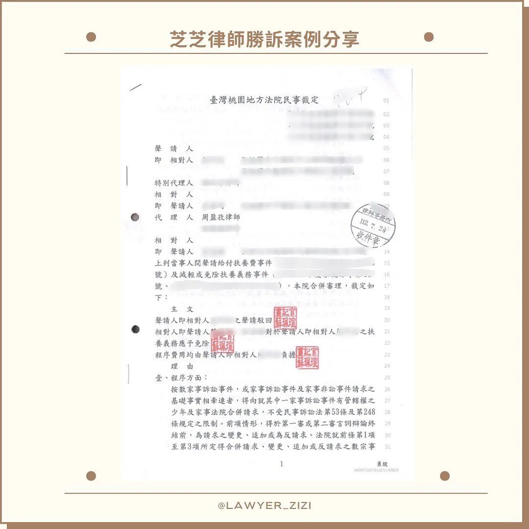 因此我們受女兒委任聲請「免除扶養義務」,最終法院採納我們的主張,作出勝訴裁定🥳