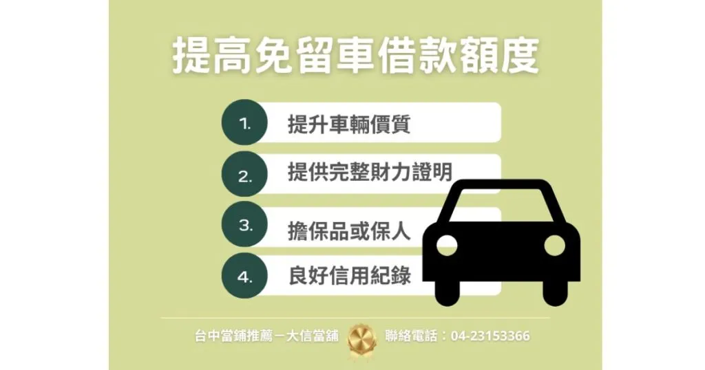 - 如何提高免留車借款額度?