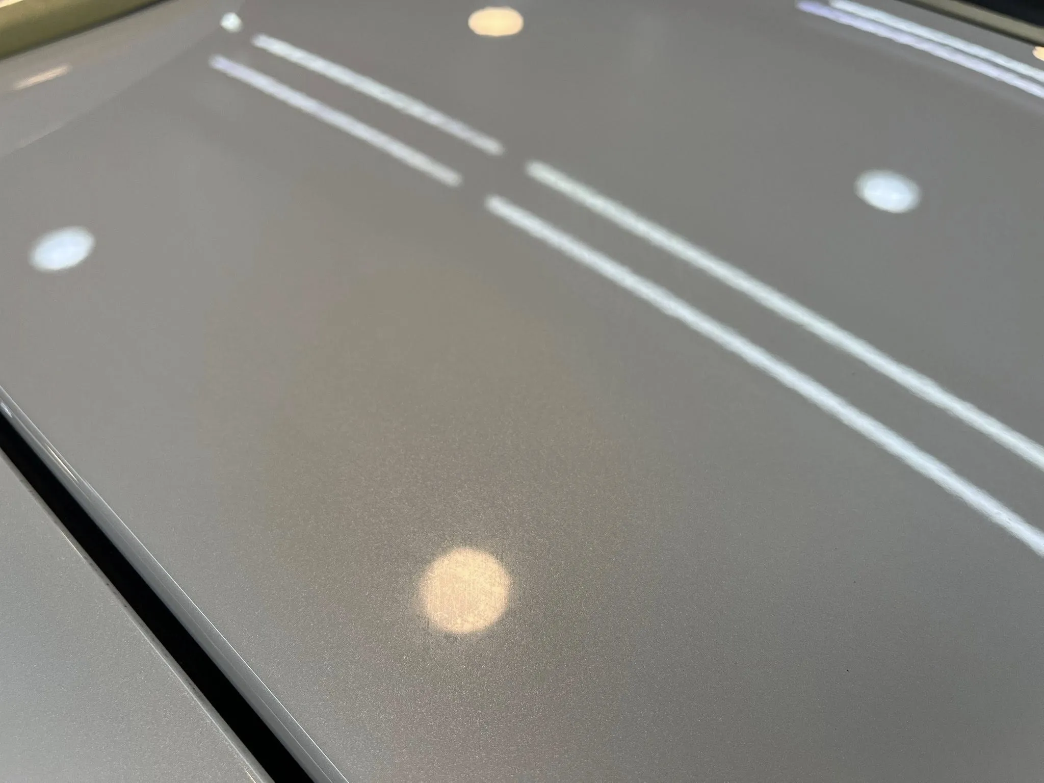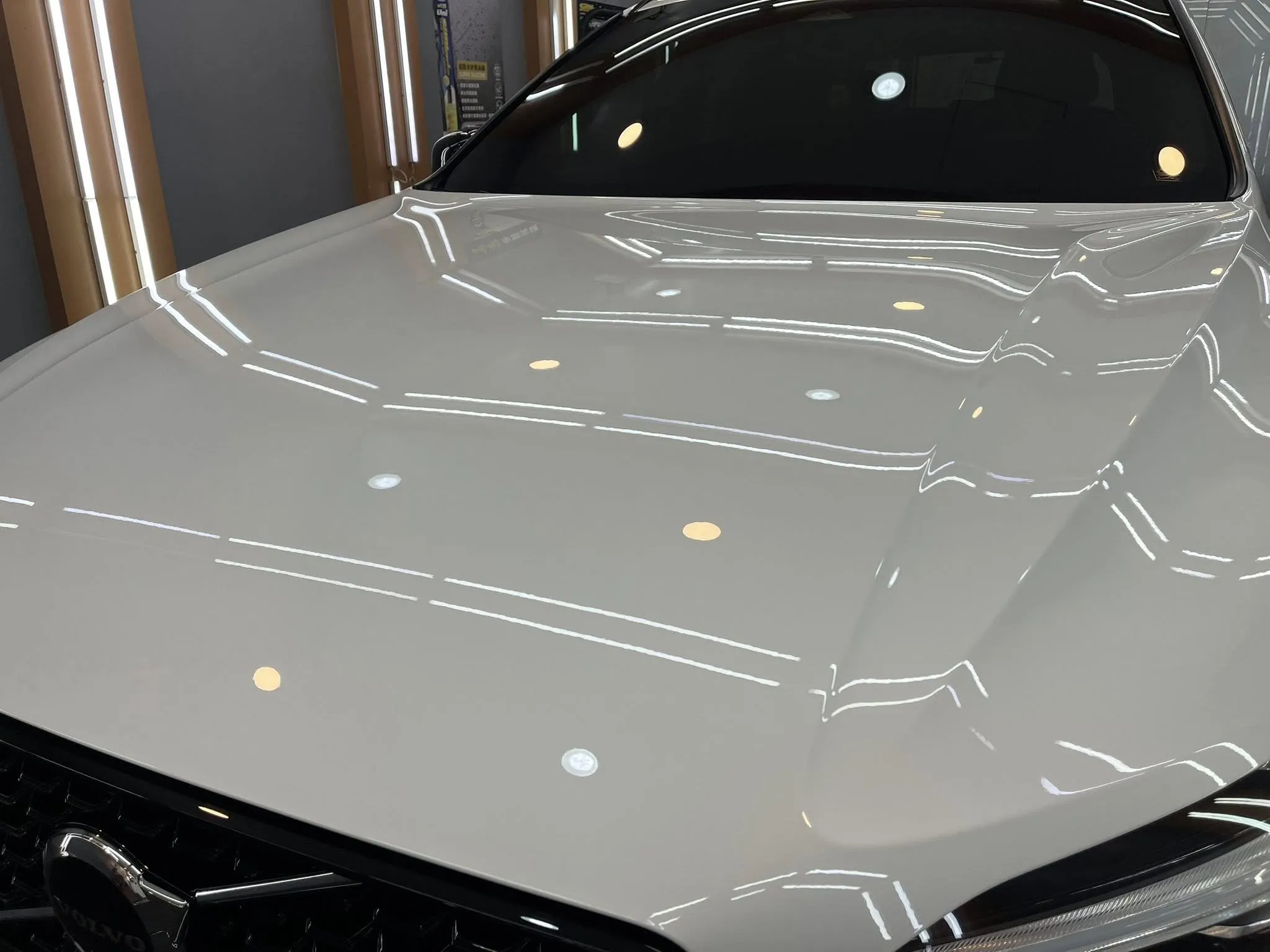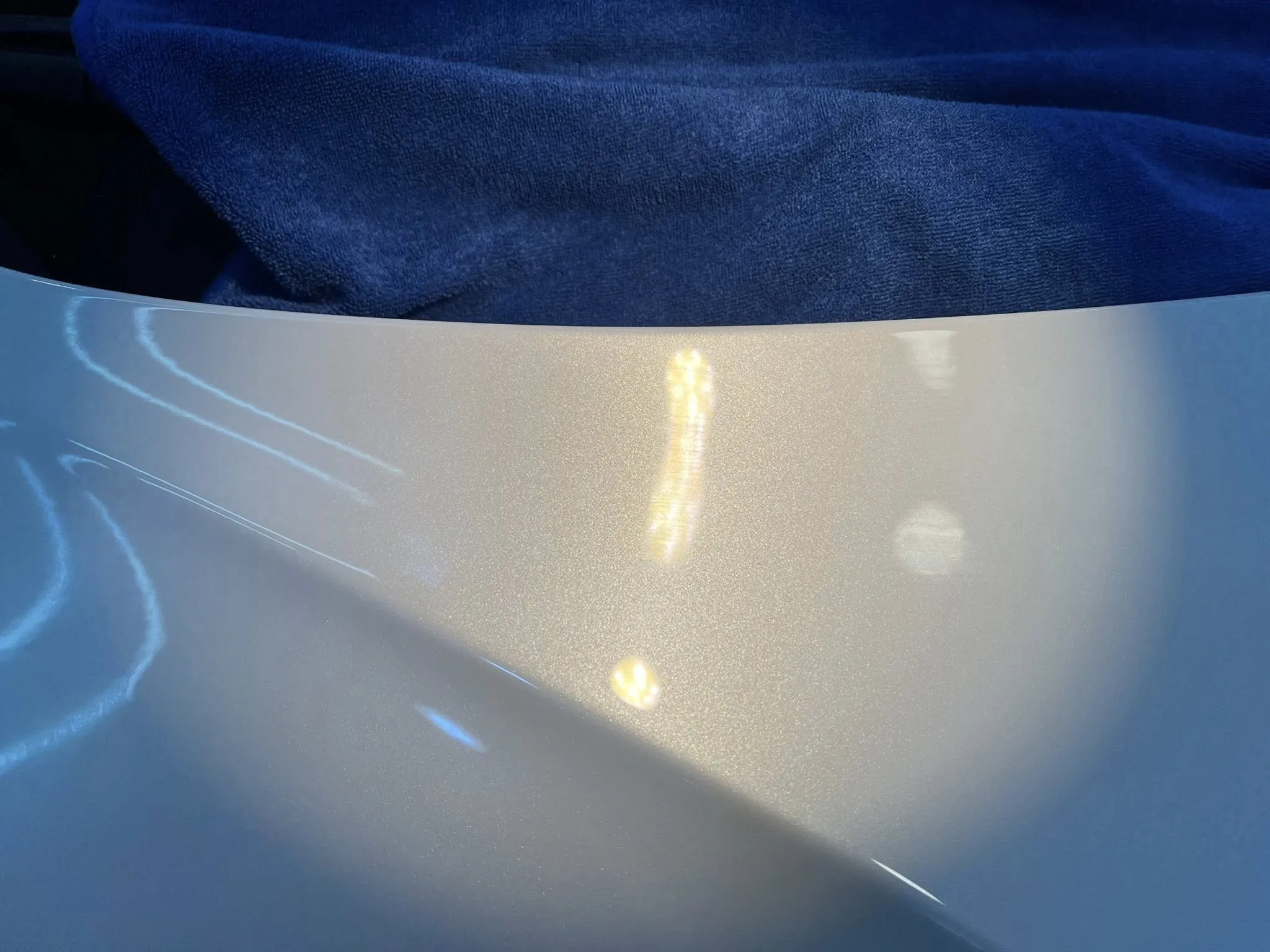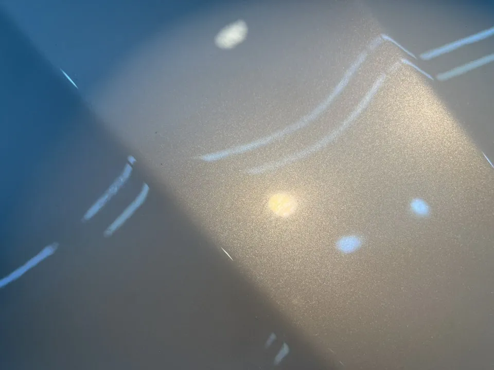車主購入二手車後,因平時於加油站洗車及不當清潔方式,導致漆面產生太陽紋、深淺刮痕與霧化現象。