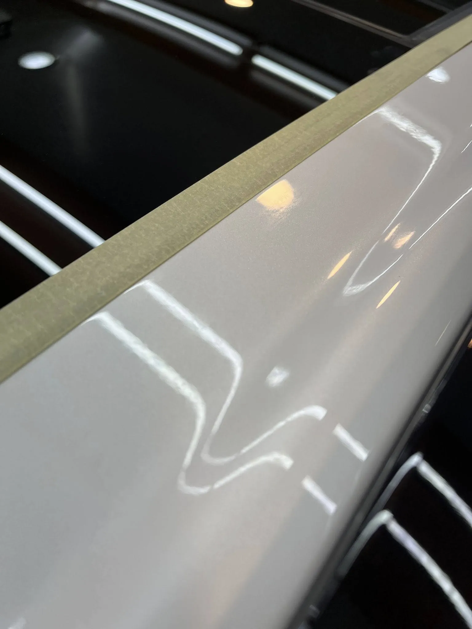 在我們進行車況檢查時,發現車身多處有鍍膜未確實施工的痕跡,幾乎遍佈整台車。經詳細說明與溝通後,車主決定進行全車大美容拋除作業,重新為愛車打好基礎。