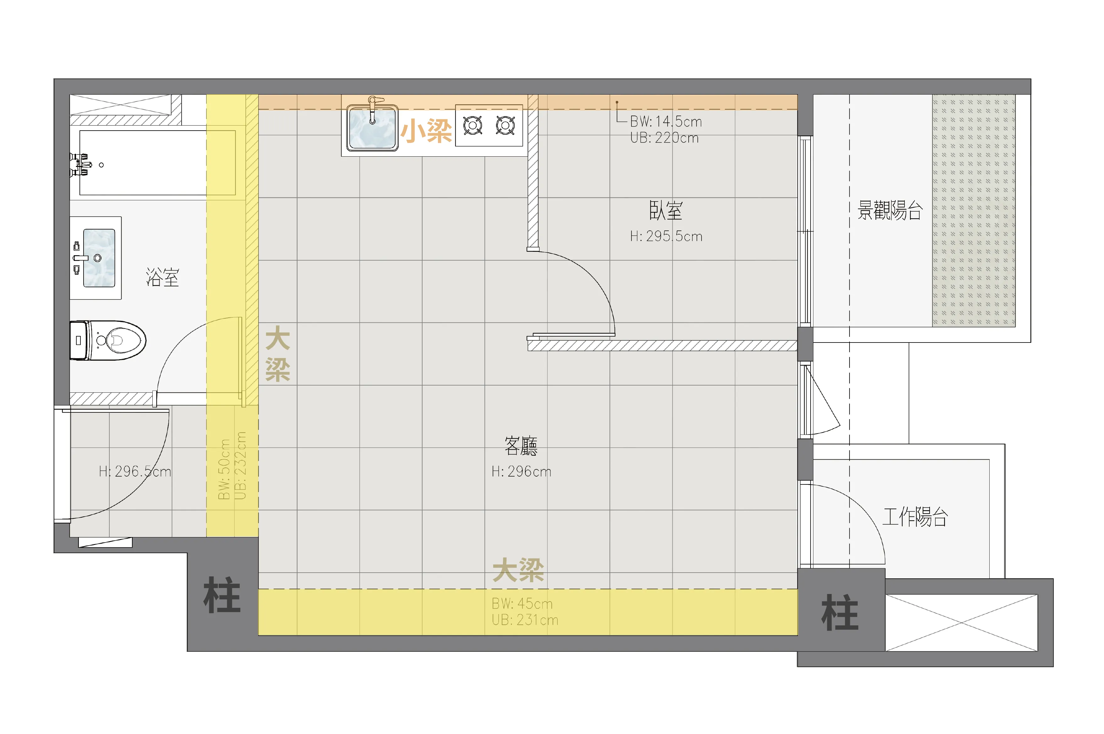 巨大的梁柱若處理不當,容易造成壓迫感與風水顧慮(如壓梁)。