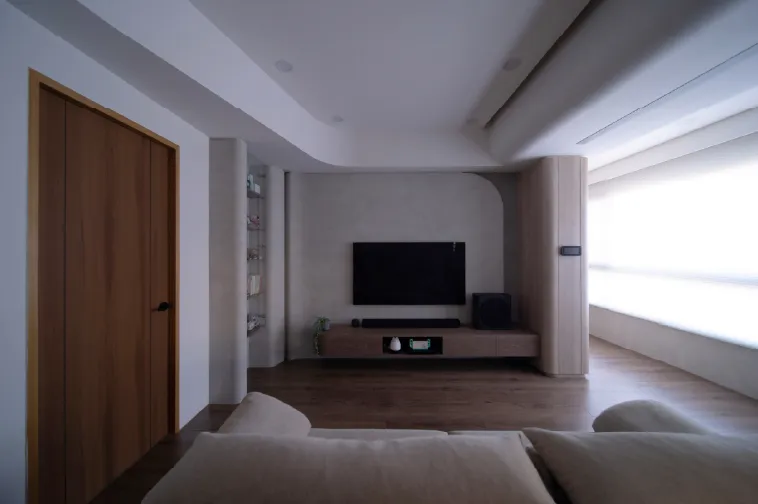 ▪️天花板造型修飾: 不一定要平釘天花板犧牲屋高。透過「弧形」或「斜角」設計,搭配柔和的燈條光暈,可以模糊梁柱的銳利邊界,反而讓天花板更有層次與設計感。