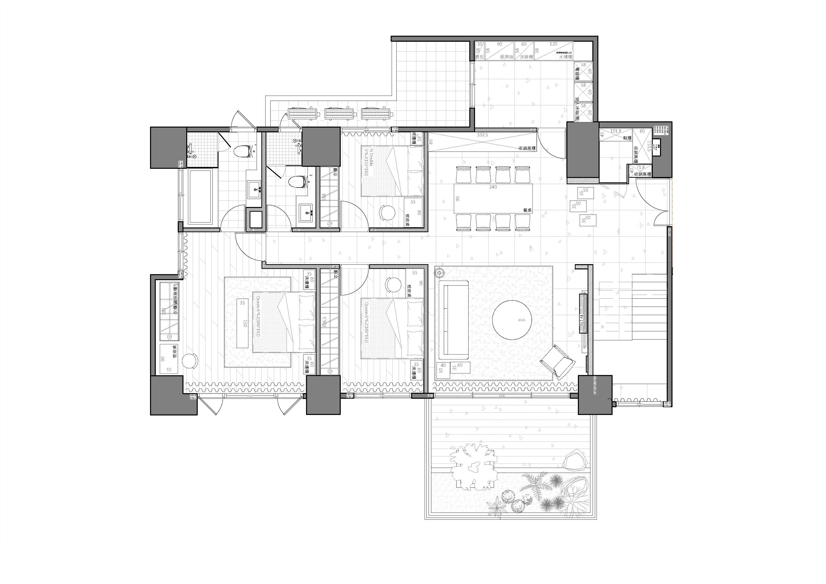 | 一、規劃階段:預留與深究,長遠的思量 W先生核心需求是「保留所有空間使用機能的可能性」。除了天花板、電視牆與起居室隔間牆之外,基礎裝修皆可精簡化。 他要求本案未來不能因家庭成員變化或功能調整而被迫二次施工,以應對未來家庭成員增加的可能。此外,所有工程品質需達20年的長期使用標準,空間造型則一切回歸機能本位,不得有不必要的多於。 這使前期規劃工作變得極為複雜而關鍵,這片看似單純的「天花」,實則承載了未來所有機能的基礎。 | |