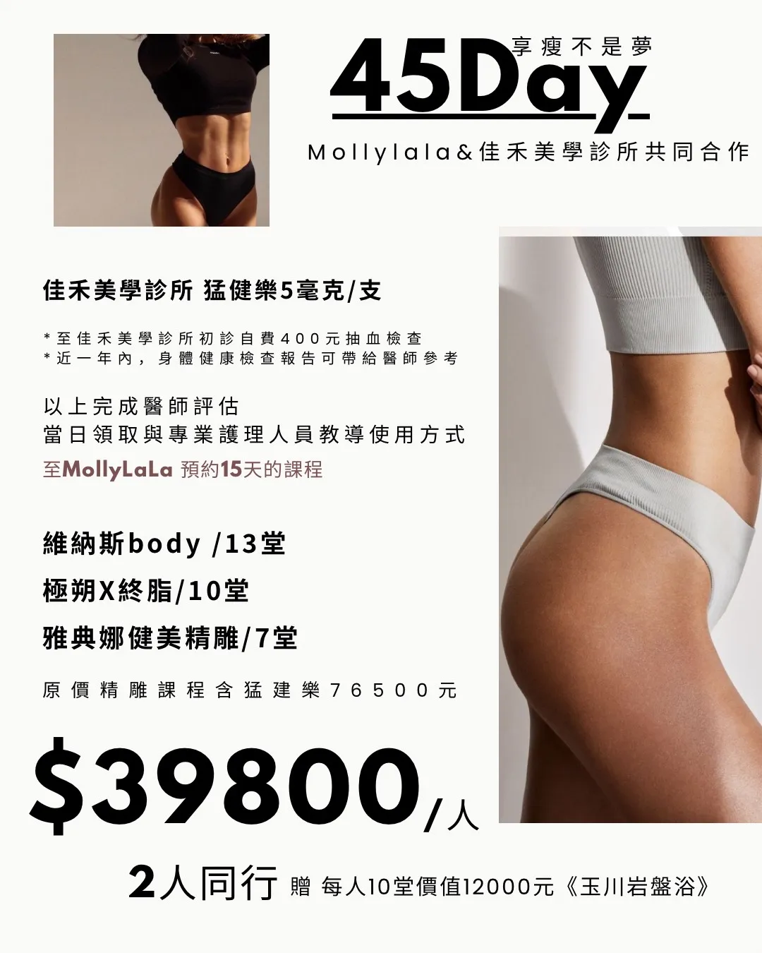 45天內 每掉1公斤 就送一堂岩盤浴