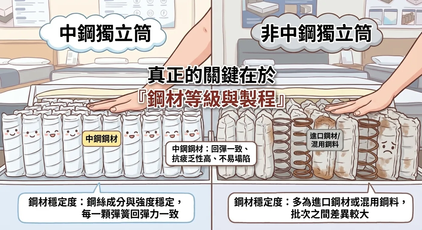 大家在挑床墊時,都會聽到「中鋼彈簧」這個名詞,但它到底代表什麼呢?