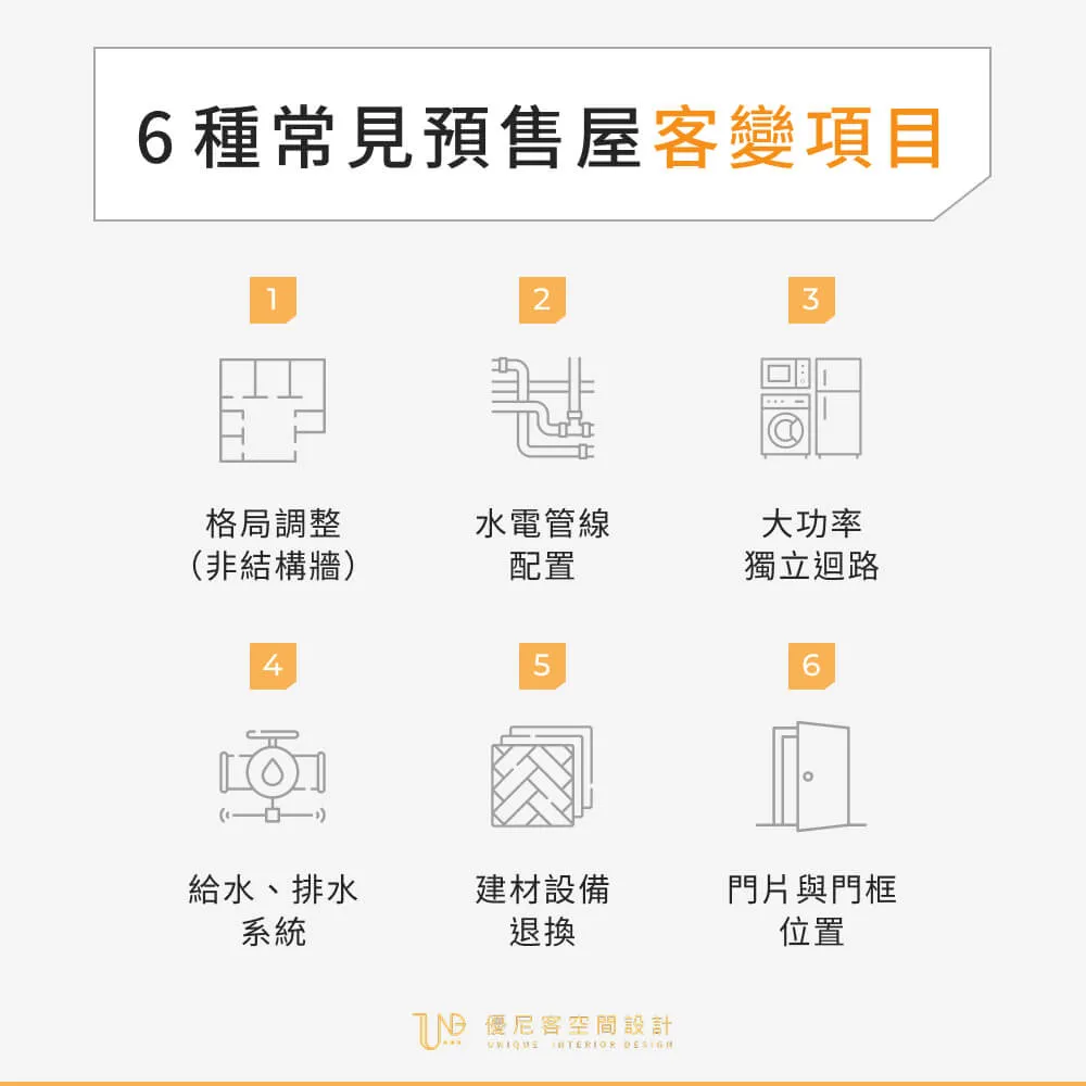 (一)基礎工程優化調整: 6 種常見預售屋客變項目