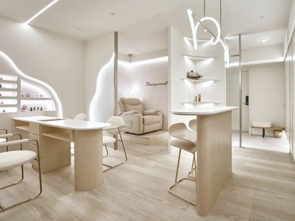 簡約風的店面色彩主要以白色、原木色為主,材質則以耐用又方便清潔的木質、人造石與烤漆金屬為主,這種風格能創造視覺上的放大效果,使小型店面看起來更開闊、更具專業度,非常適用於連鎖飲料店、簡約風格的咖啡吧,或任何需要傳達衛生、明亮、無壓迫感的專業服務場所。