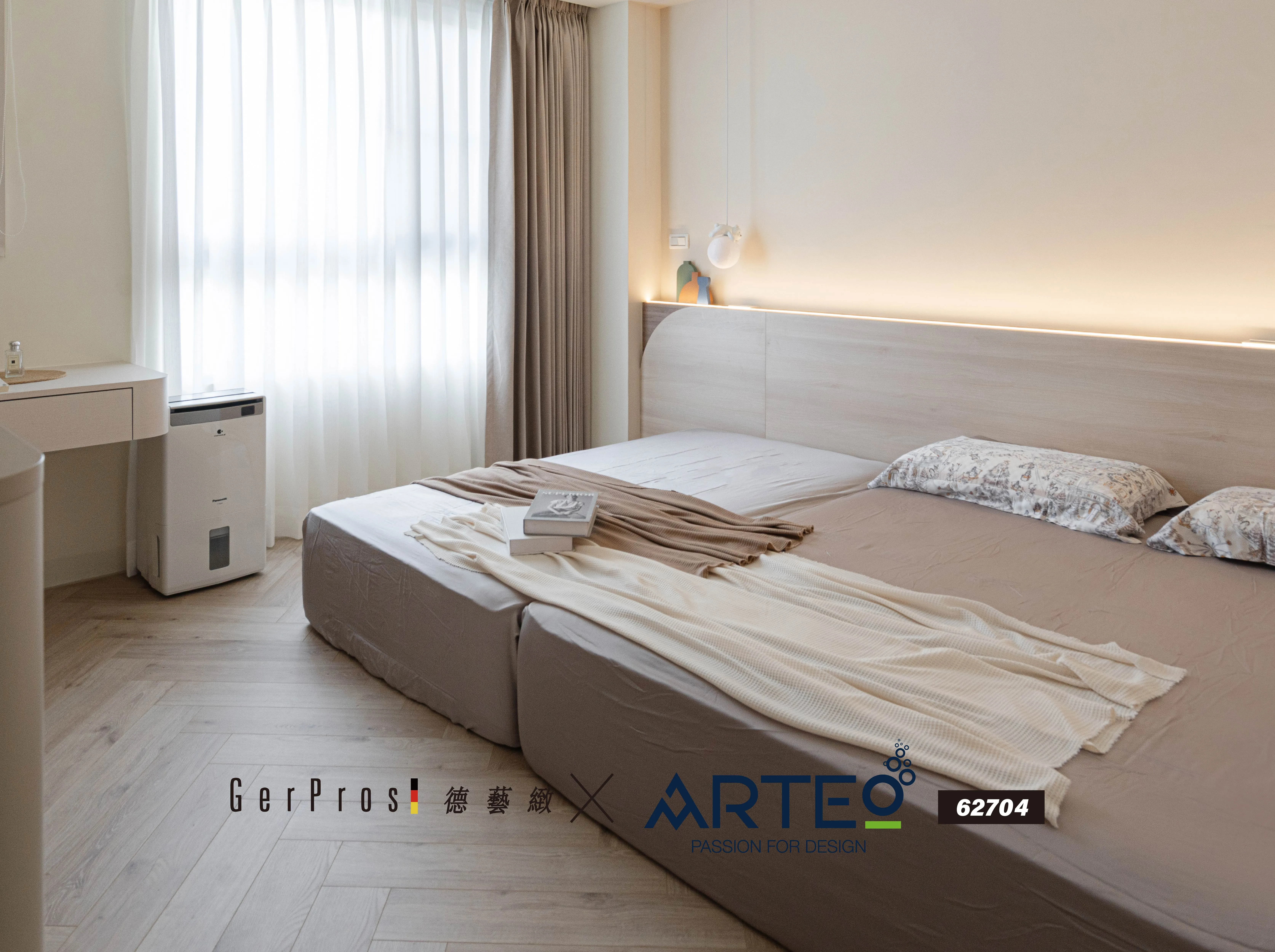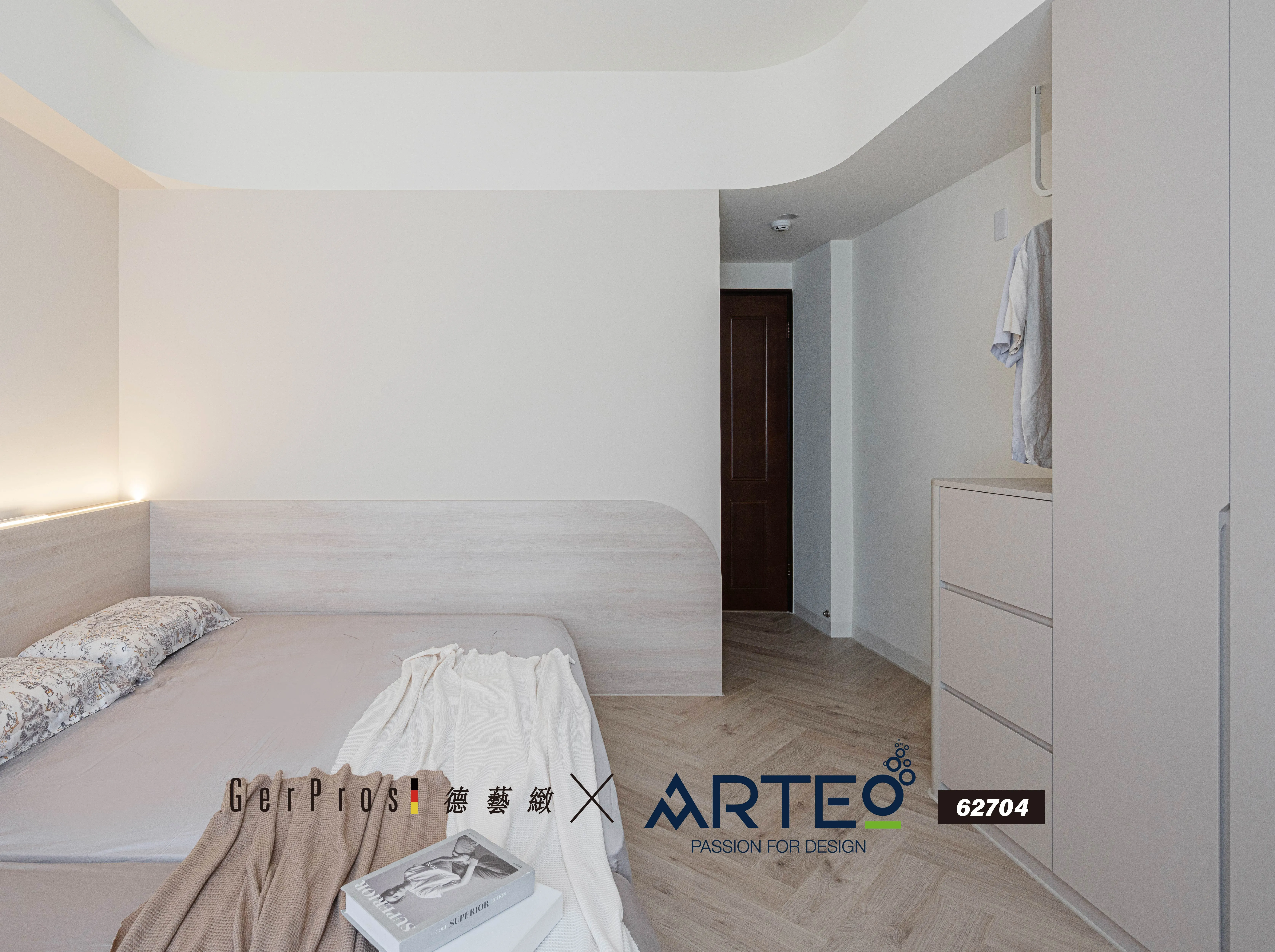 ARTEO 62704 透過人字拼鋪設,為臥室空間打造出 低調卻有設計深度的地坪表情。