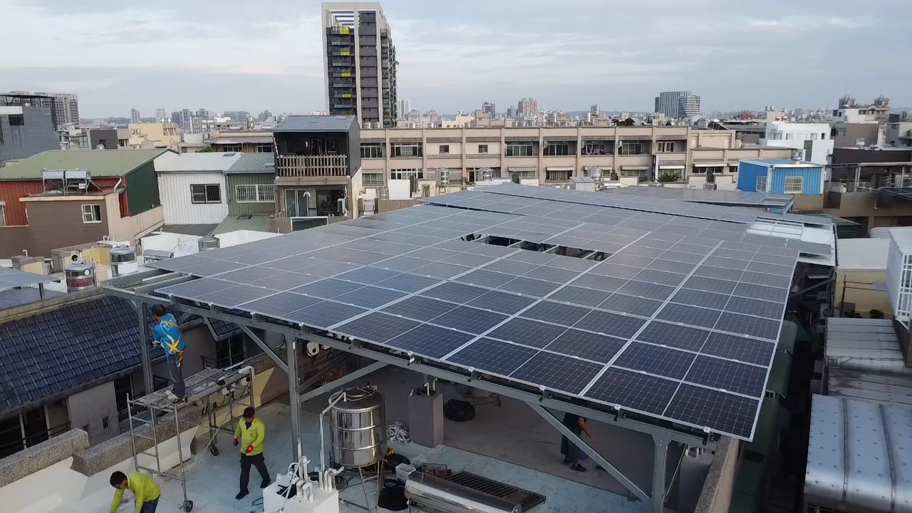 本案太陽能系統依現場屋頂條件規劃,採用高效率太陽能模組與符合台電規範之變流設備,兼顧發電效益與系統穩定性。