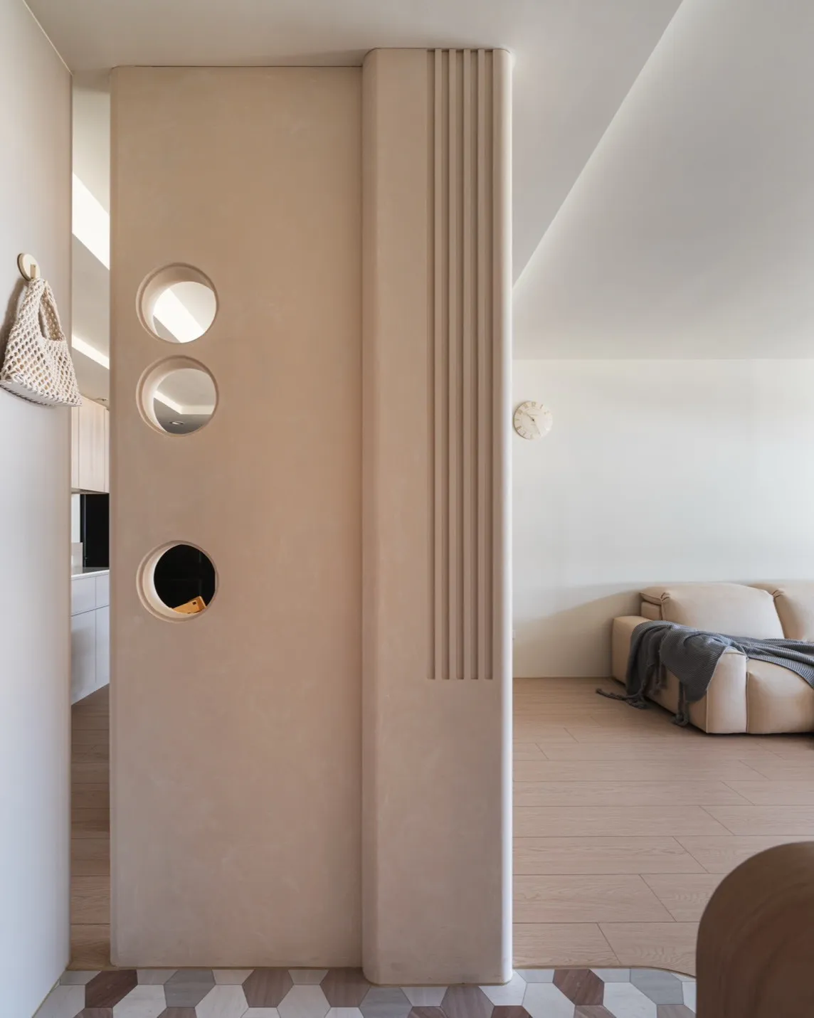 • 設計方向|在不浪費原有坪效的前提下,重新安排進門視線與動線順序,為生活創造一個緩衝的開始。