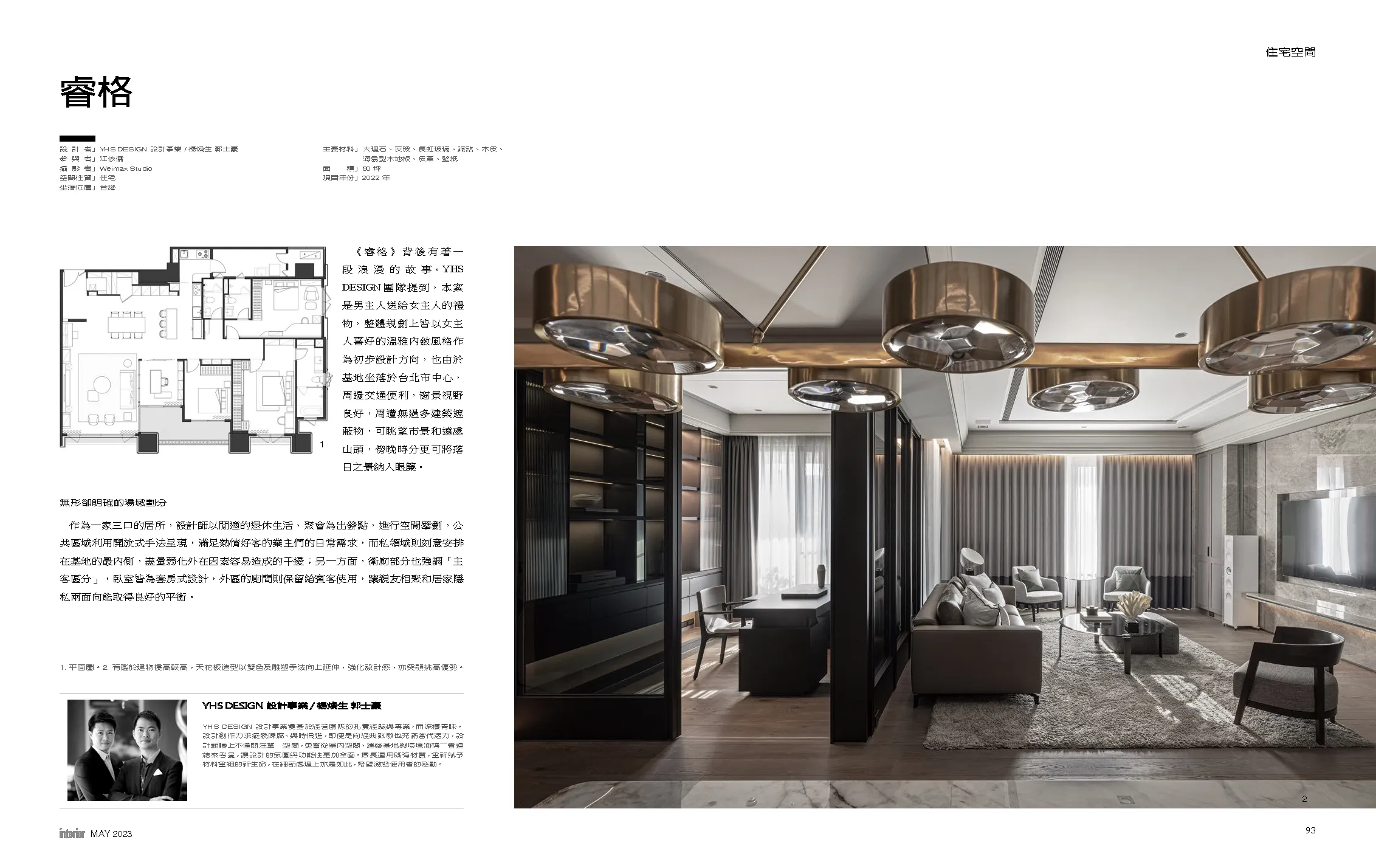 《睿格》背後有著一段浪漫的故事。YHS DESIGN團隊提到,本案是男主人送給女主人的禮物,整體規劃上皆以女主人喜好的溫雅內斂風格作為初步設計方向,也由於基地坐落於台北市中心,周邊交通便利,窗景視野良好,周遭無過多建築遮蔽物,可眺望市景和遠處山頭,傍晚時分更可將落日之景納入眼簾。