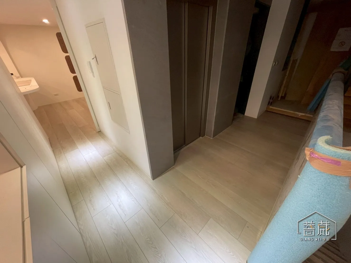 完工實景|台南・崇德路|人字拼 × 質感宅一走進空間,人字拼的鋪陳立刻成為視覺主角,9PL 波爾森與 9MB 貝克山交織出的象牙原木色調,溫潤不黃、不灰不冷,整個空間多了一份「靜靜耐看的高級感」。