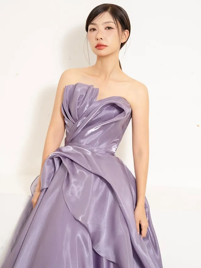 紫色亮面琉光緞禮服【彰化手工婚紗推薦】【彰化輕婚紗推薦】