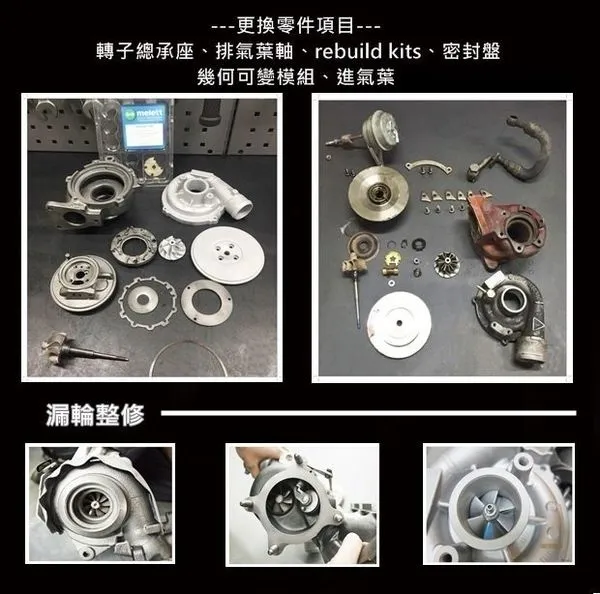 。,需將整顆渦輪拆卸整理更換軸芯,並且把油汙清除,透過電腦儀器校正,將渦輪調