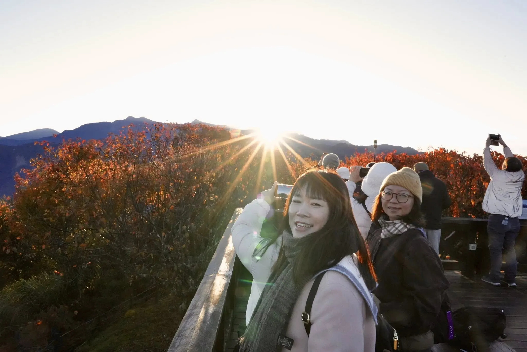 阿里山賞楓紅觀日出~~祝山旁的小笠原山楓紅+日出~超….美….的
