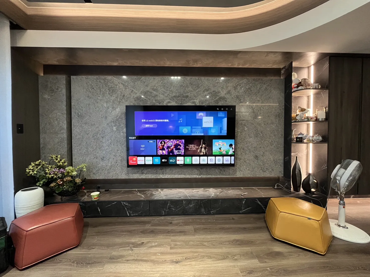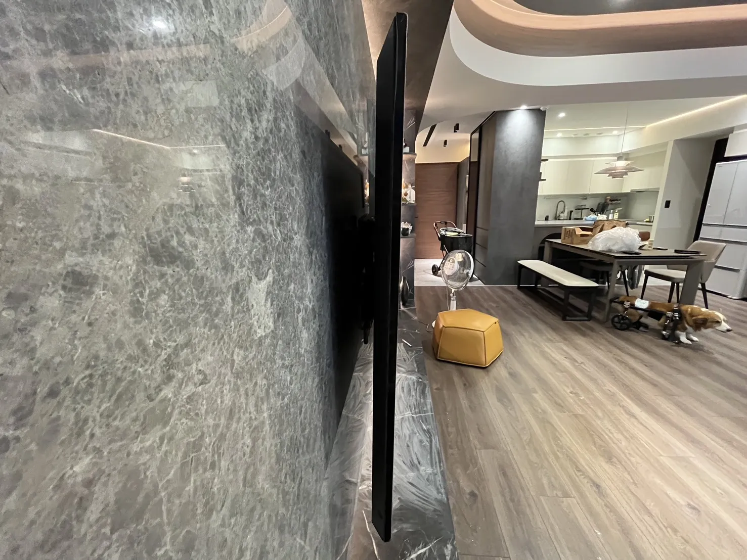 新家裝潢大理石牆面,75吋電視安裝