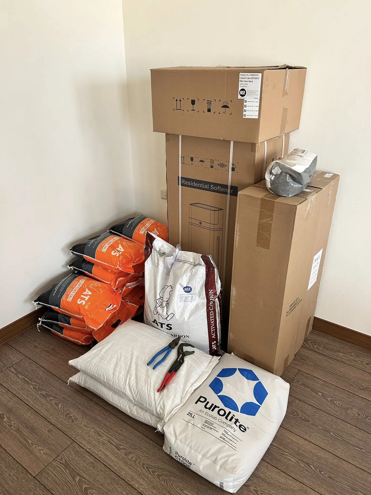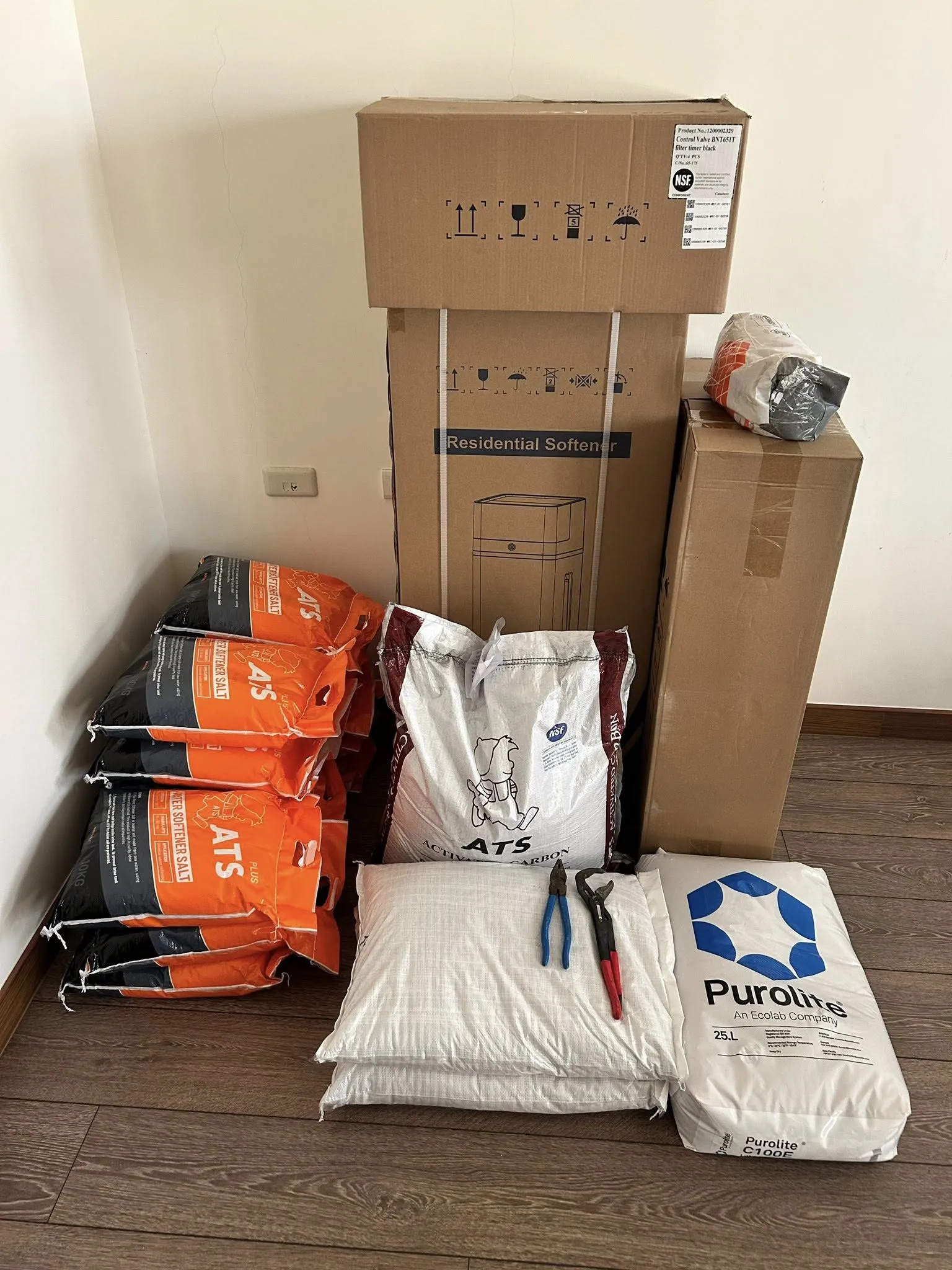 台中太平店面淨水器迭代更新,原系統天X淨水更換成ATS淨軟水系統,水塔前過濾泥沙及鈣鎂離子再上頂樓儲水,頂樓水塔後再新增設活性碳過濾。
