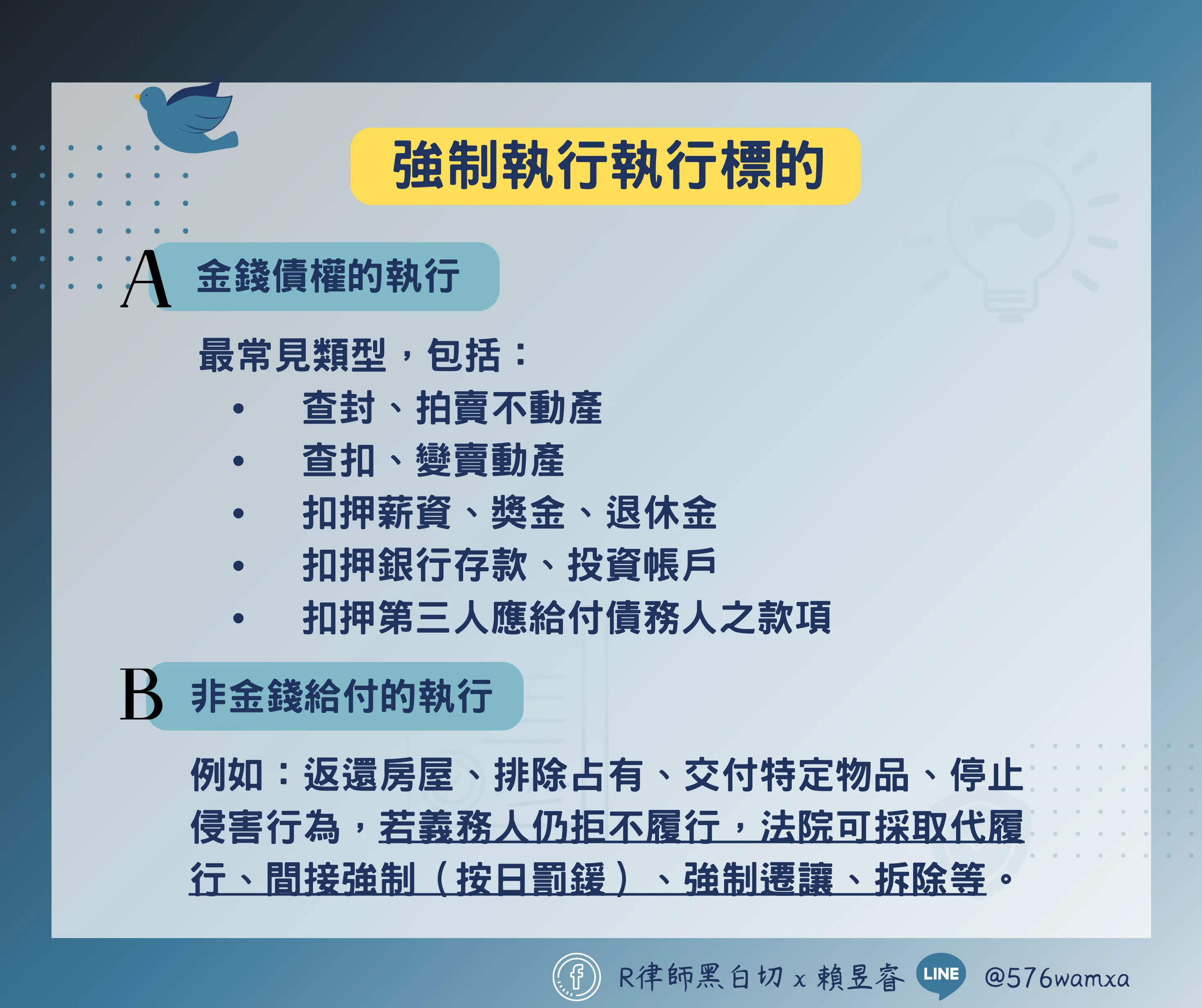 在法律世界裡,判決只是確認權利的起點,強制執行才是實現權利的關鍵。懂得何時出手、怎麼執行、執行到什麼程度,往往比是否勝訴更重要!若您已取得判決、調解筆錄,卻遲遲無法實現權利,或正面臨執行困境,及早理解強制執行的制度與策略,才能避免權利在時間與程序中悄悄流失。