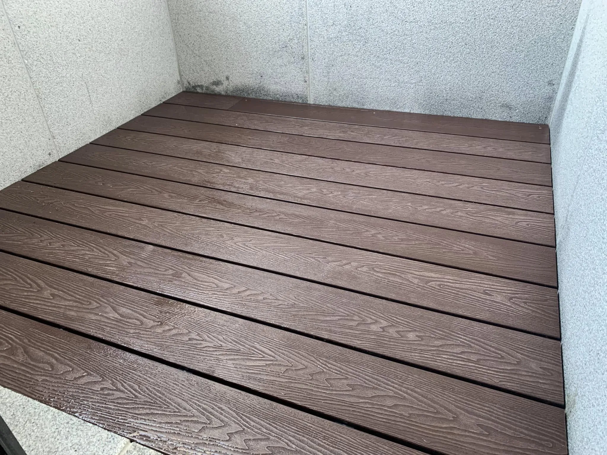 鋪上塑木,讓陽台成為都市裡的一隅靜謐綠洲。
