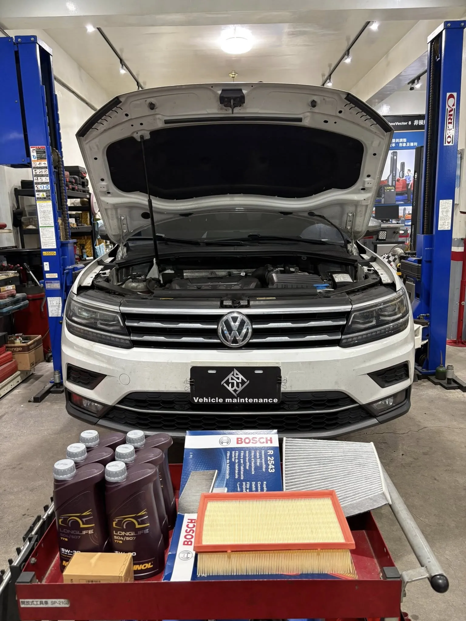 Volkswagen Tiquan 實施定期保養|汽車輪胎更換新竹汽車改裝