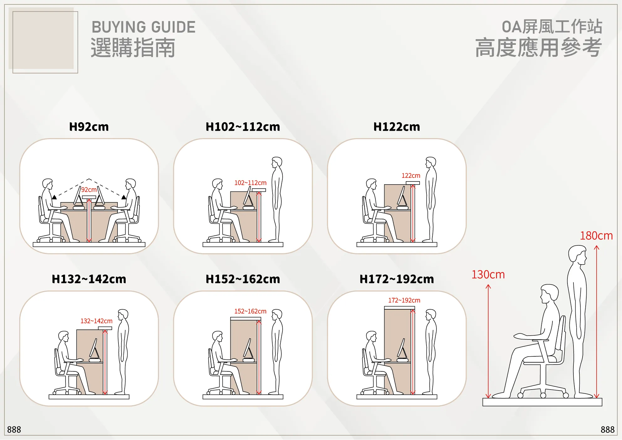 屏風系統提供多種標準規格尺寸,可依空間需求靈活配置。