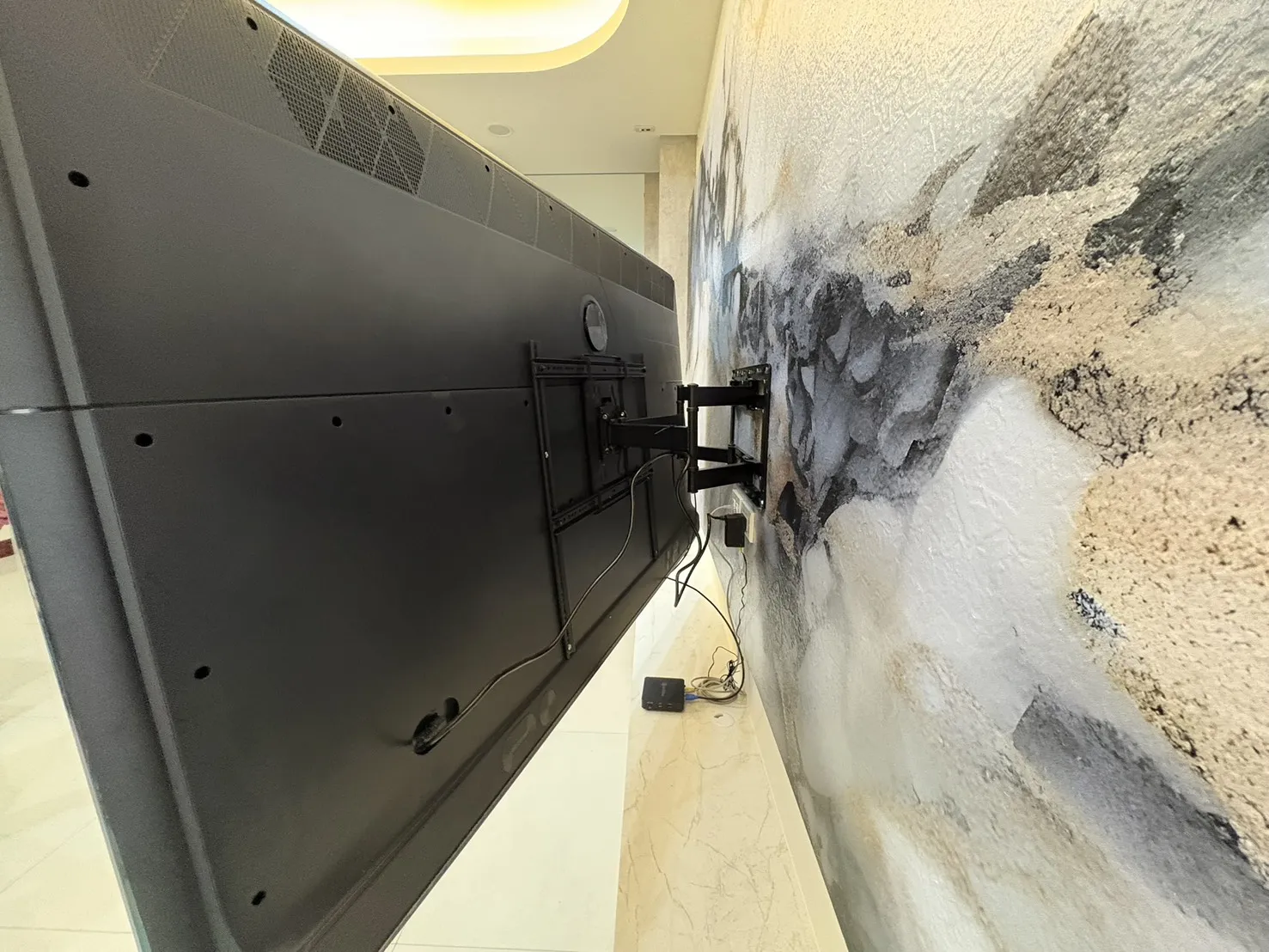 電視壁掛架安裝:安全探測牆體,線路全隱藏電視壁掛高度定位:合適觀看高度與距離,長期觀看舒適