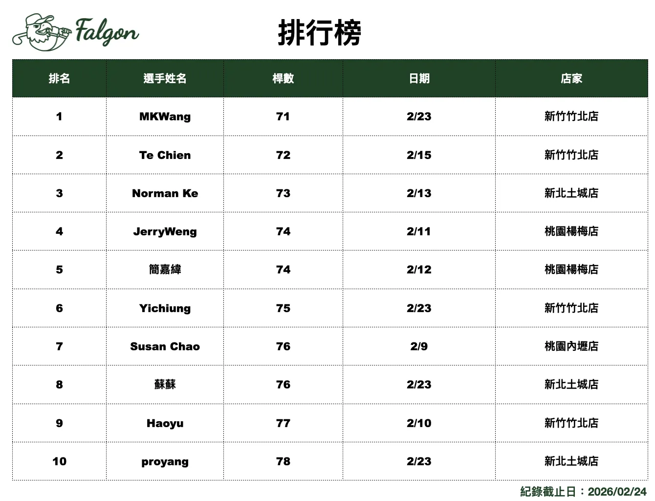 - 只要在社群上傳分享任何比賽成績並標記 @falgongolf ,額外再獲得 NT$200 元折扣碼(每人限領一次)