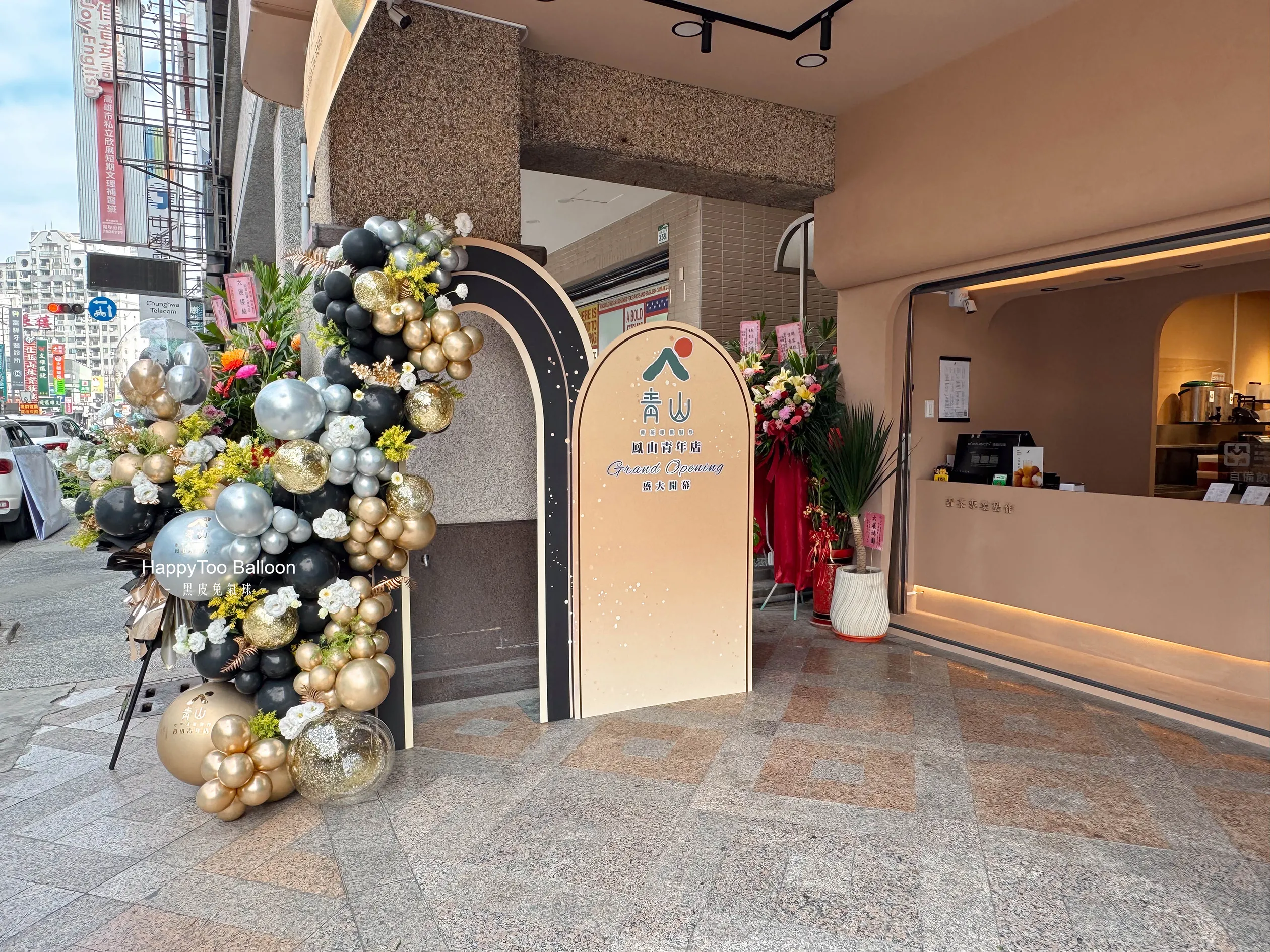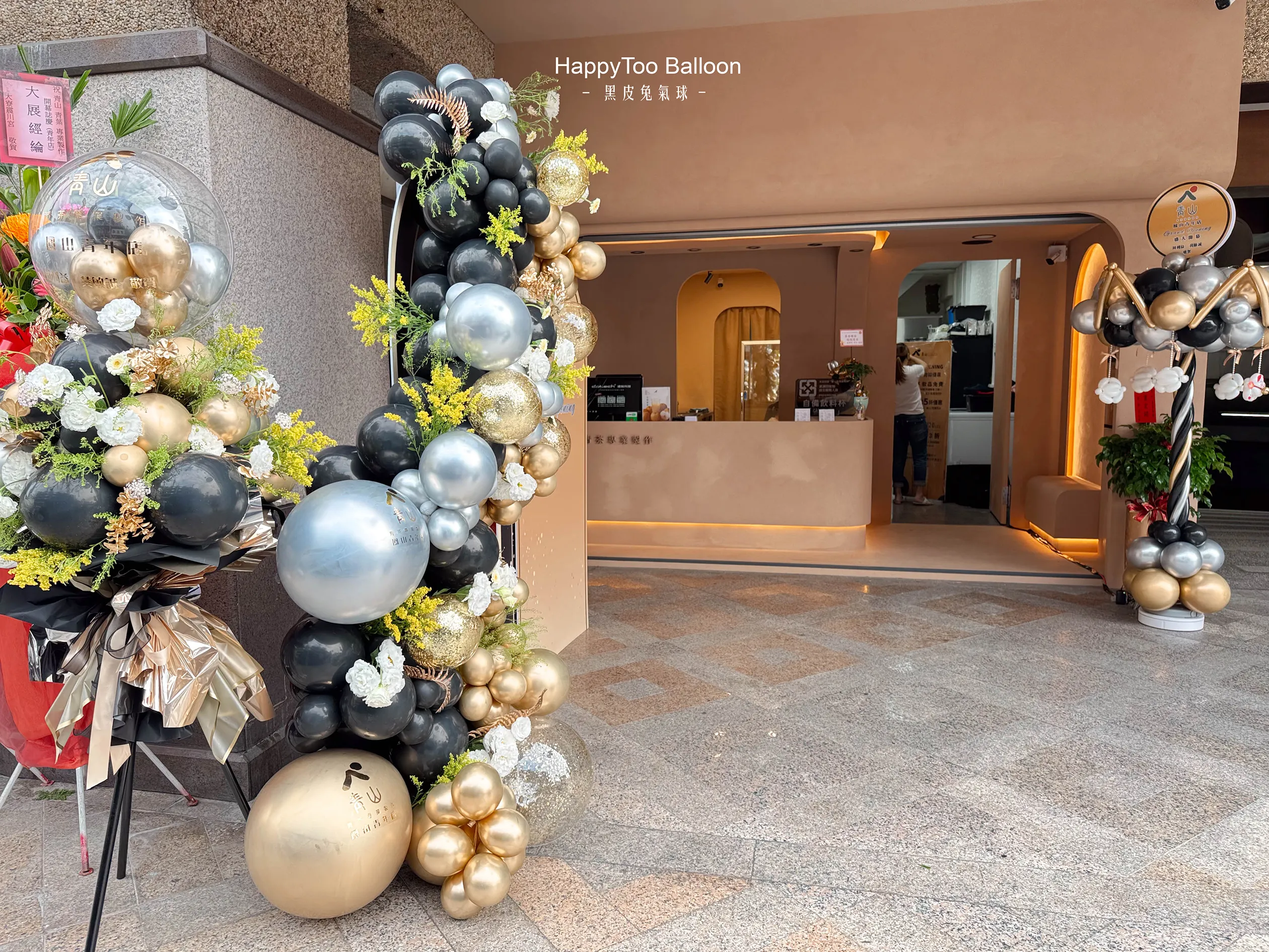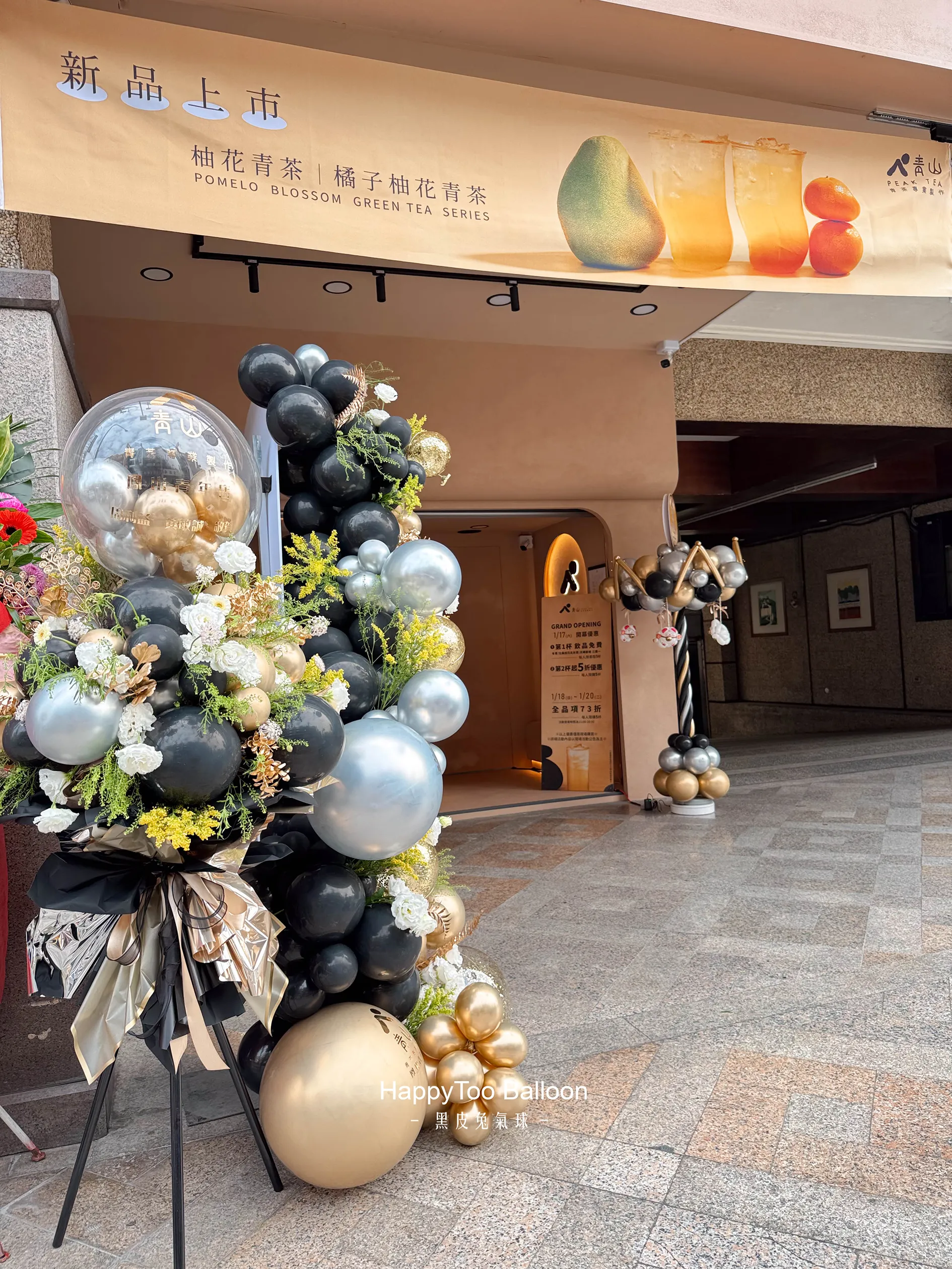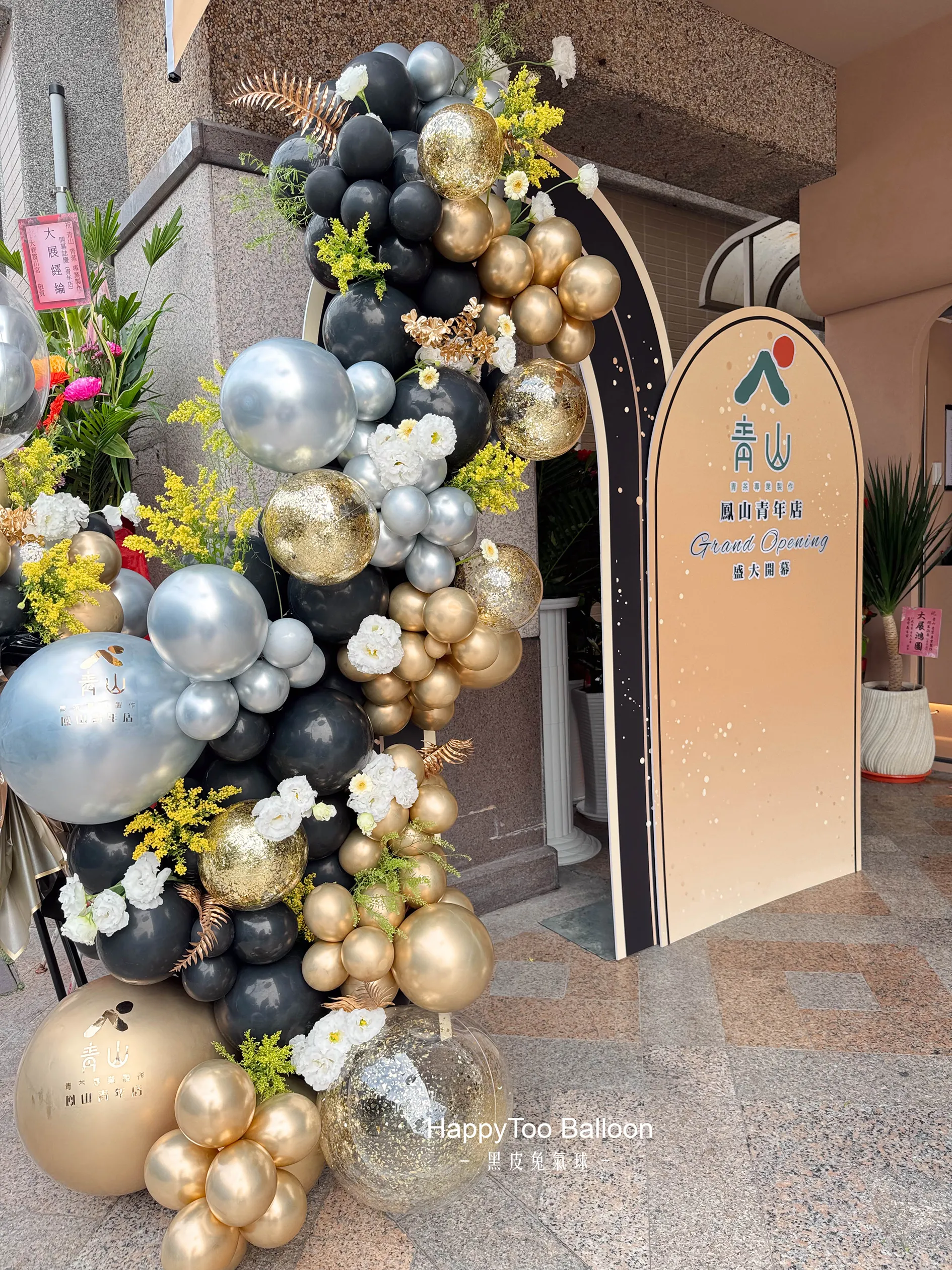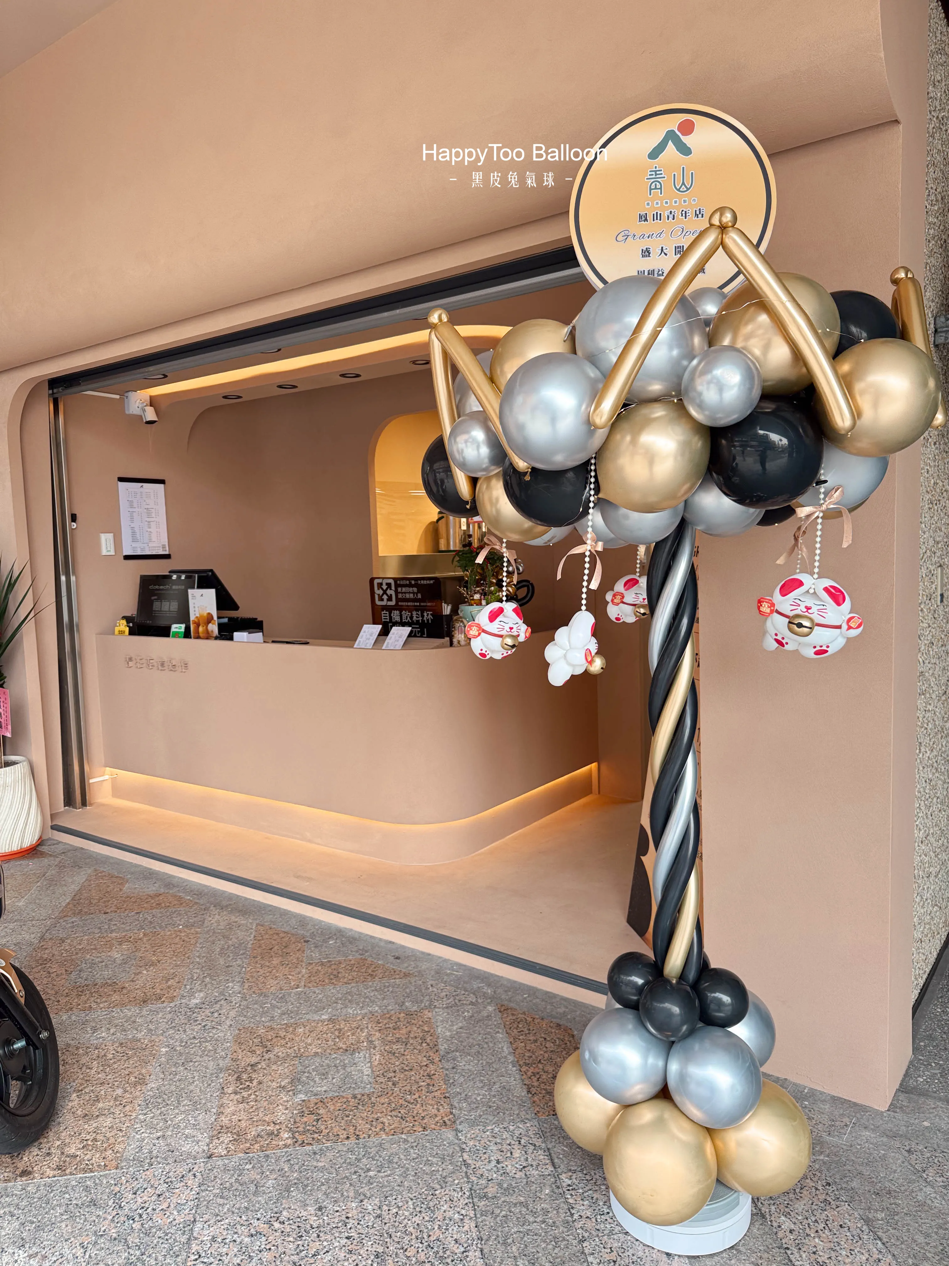 #青山茶飲 #開幕佈置 #花藝設計 #氣球藝術 #品牌儀式感 #招財迎新 #HappyTooBalloon