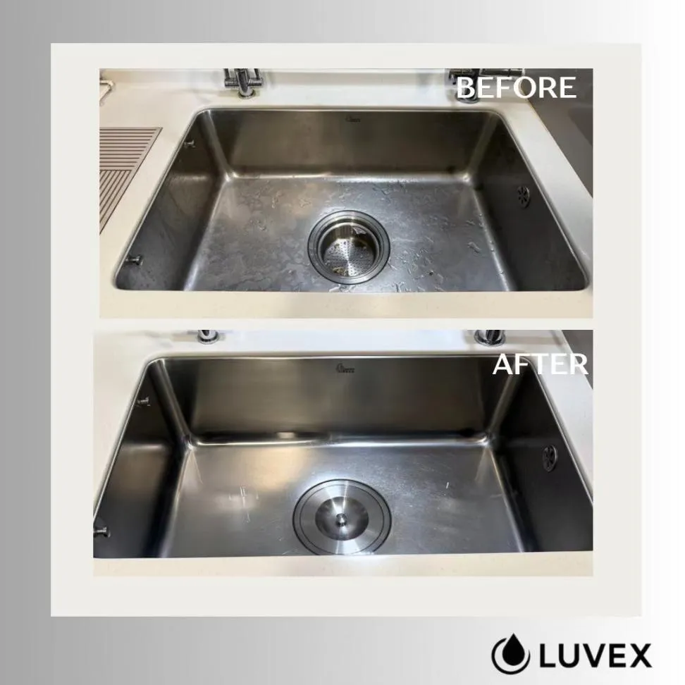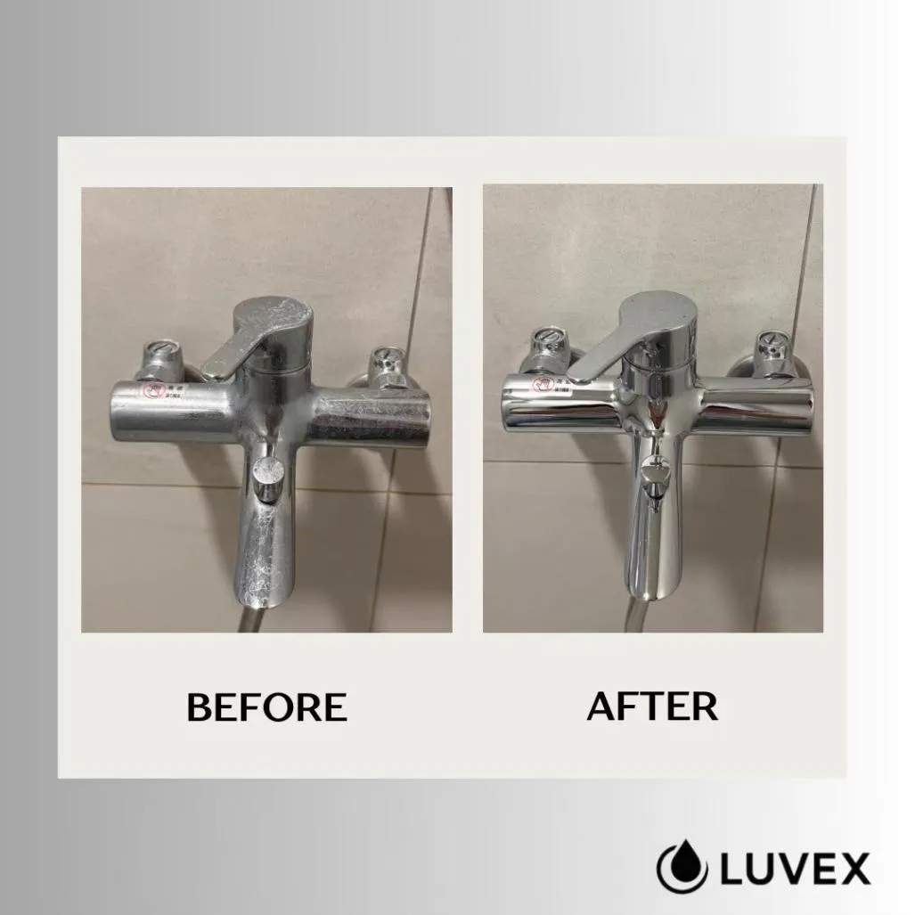 在鍍膜施工前,團隊先針對受損與水垢堆積區域進行細緻的前處理清潔,盡可能改善表面狀況,再依照材質特性施作專業鍍膜,為五金與相關表面建立防護層,降低日後水垢再次附著的機率。