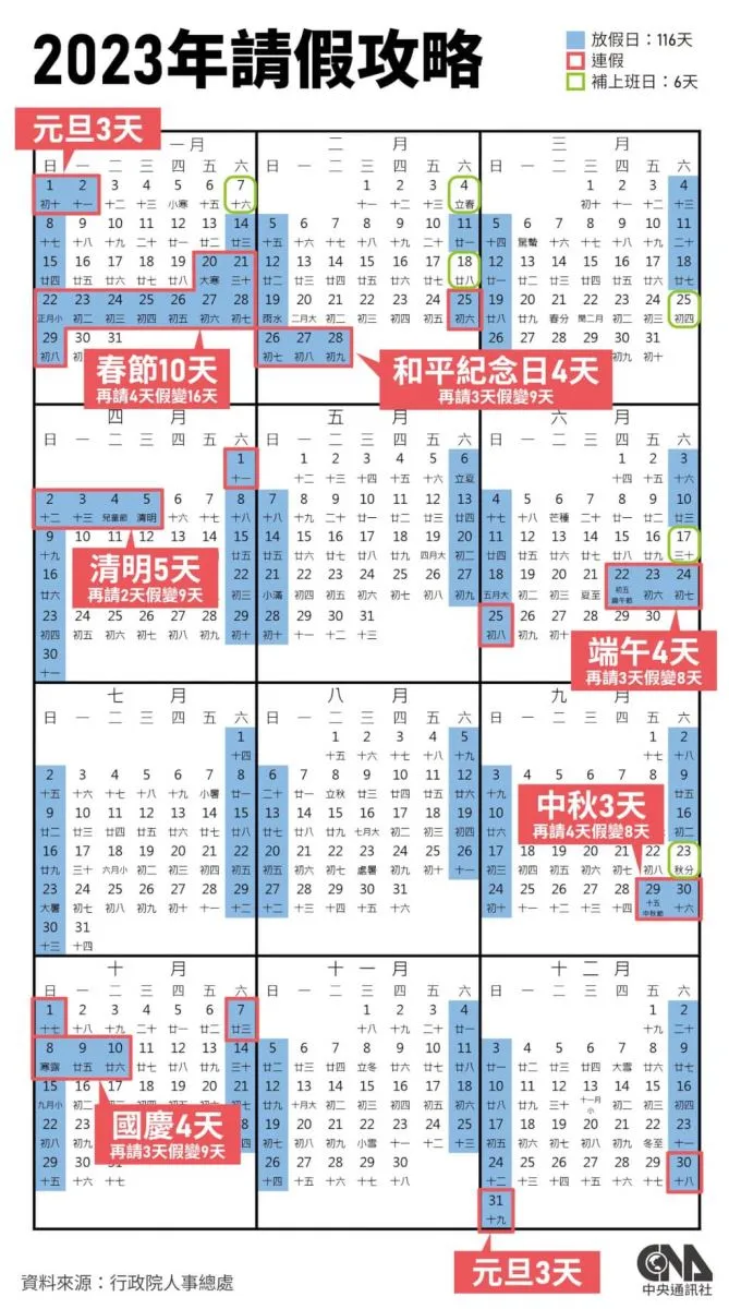 換言之,除非再次修法,否則只剩下農曆除夕前一日與民族掃墓節會調整了,國慶日放假4天確實成為追憶了。