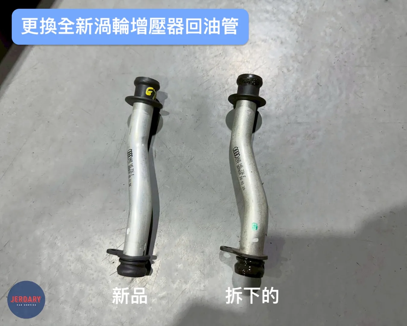 - 渦輪回油管更新: 同步更換全新渦輪增壓器回油管,預防零件老化導致的二次滲漏。
