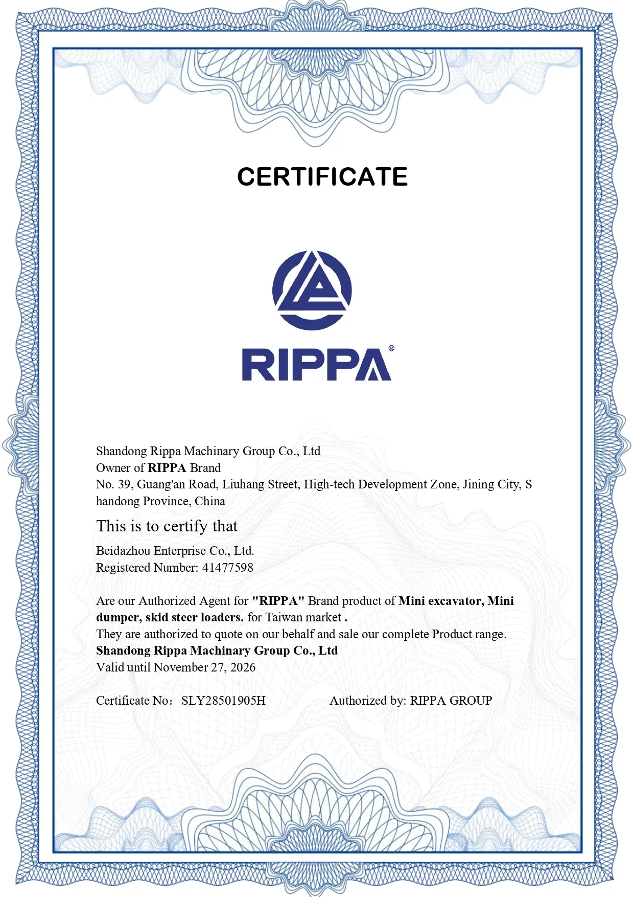 【RIPPA】山東立派機械集團公司授權【北騰機械】台灣地區代理經銷商(中/英文版證書)