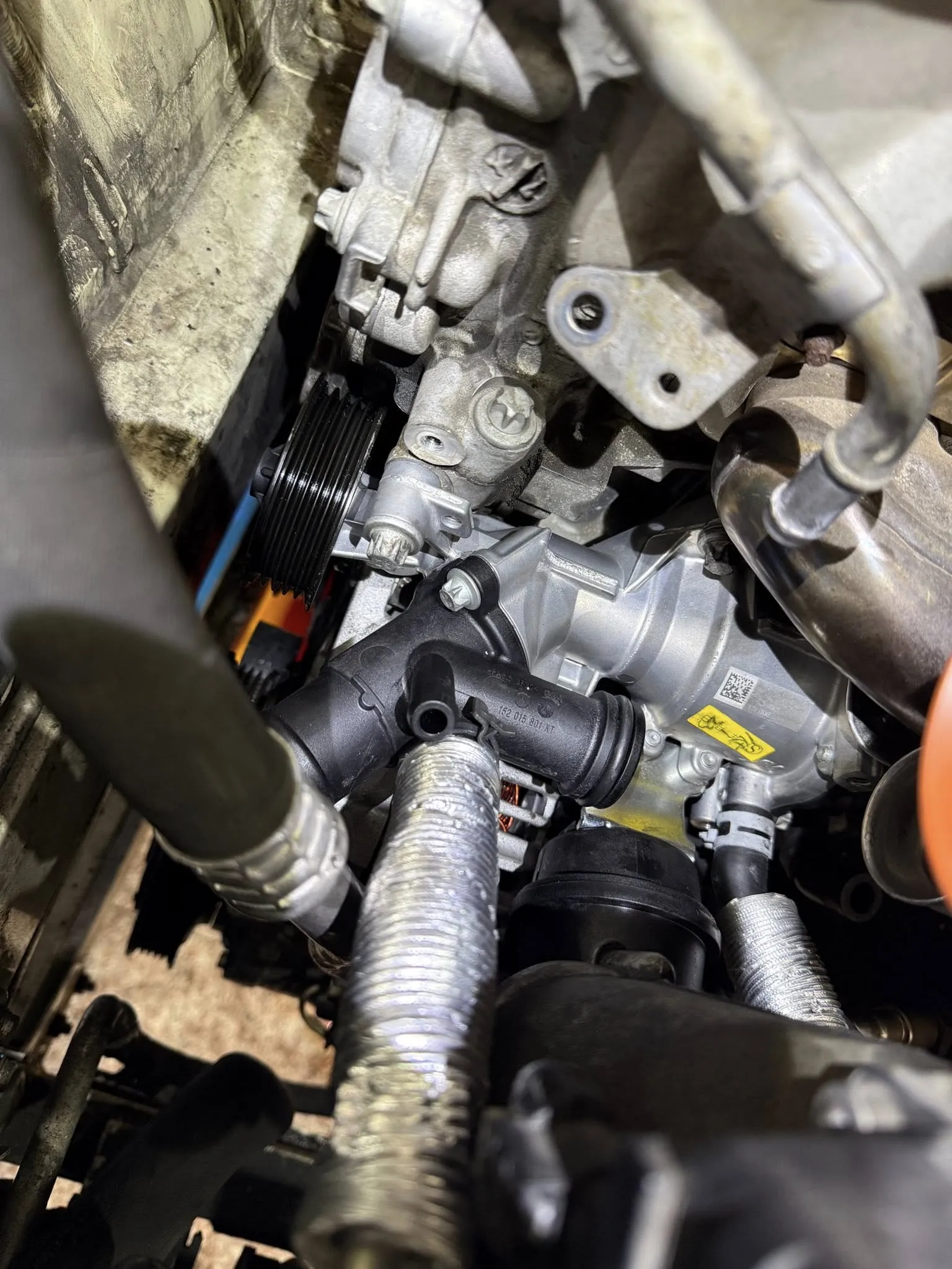 Mercedes Benz CLA200 M270引擎水泵浦咬死導致引擎停在路邊發不動,更新正廠件後故障排除