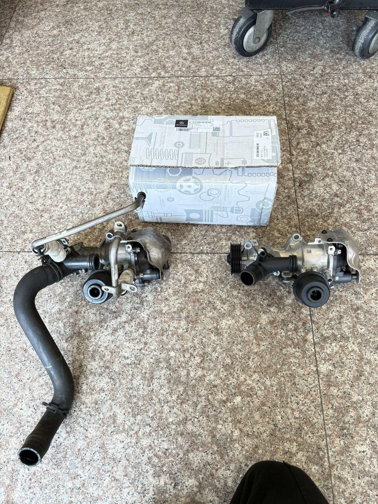 Mercedes Benz CLA200 M270引擎水泵浦咬死導致引擎停在路邊發不動,更新正廠件後故障排除