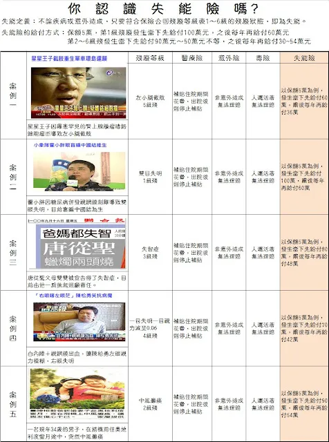 透過別人的案例,除了希望能讓您正視失能的問題之外,筆者也附上一些關於失能險的資料供您評估,希望這些資訊可以引發讀者您重新檢視自身保障是否完整的風險意識。
