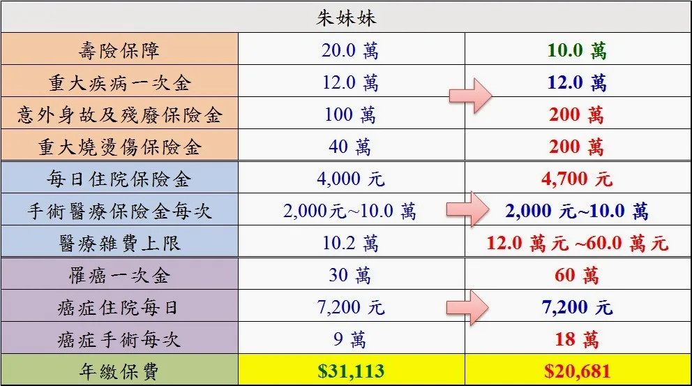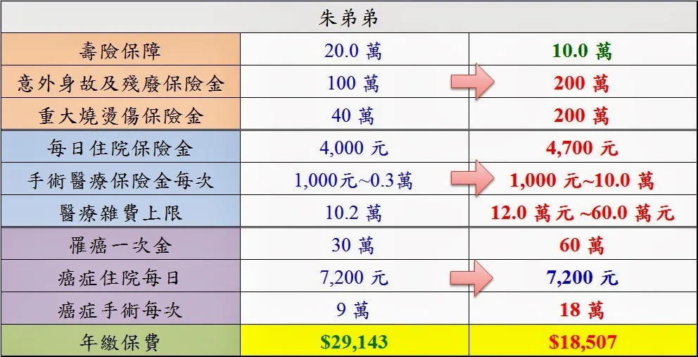 【保單優化】朱先生全家保單經優化後,一年可省3萬元,20年共省60萬;但保障內容也神奇的提昇了