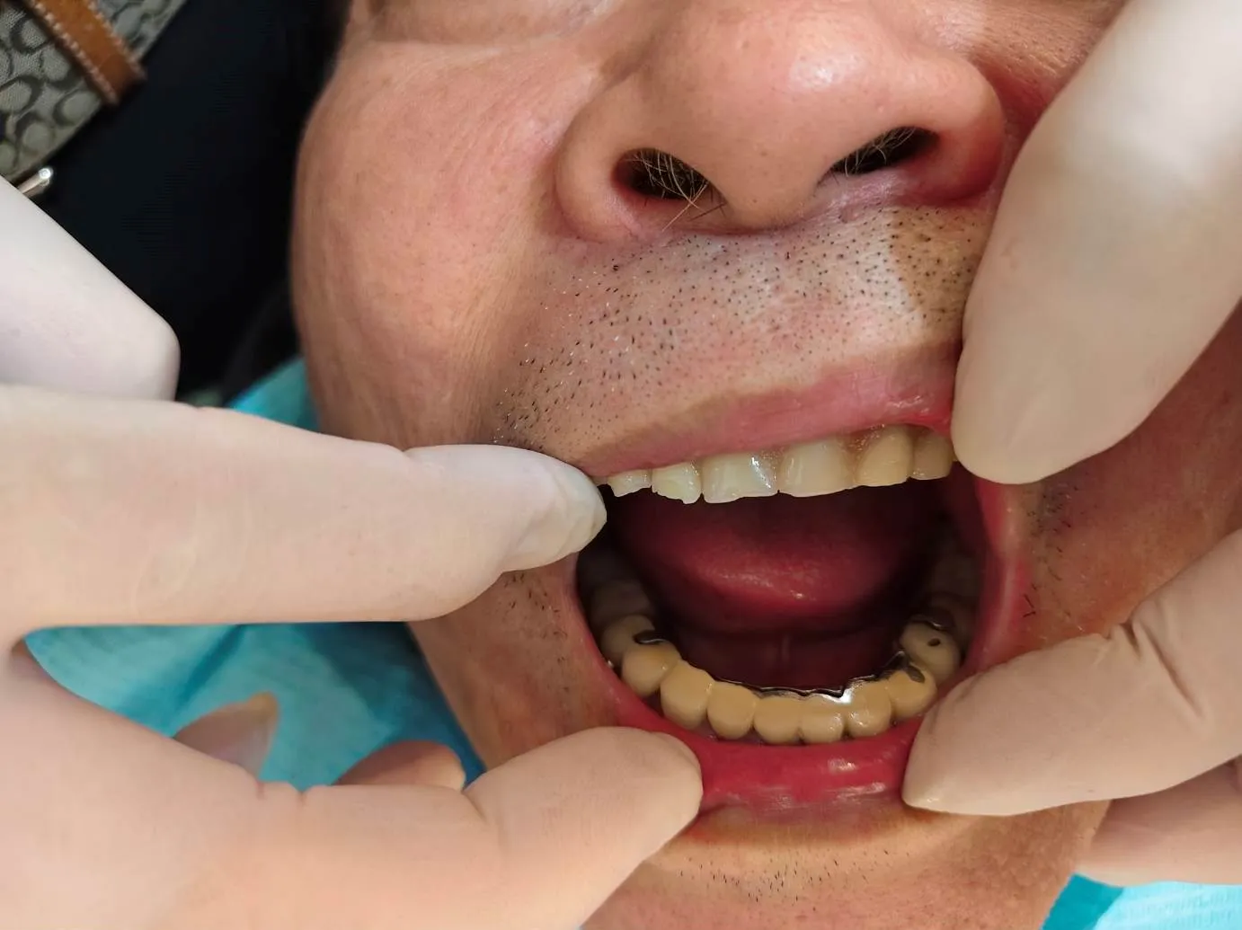 牙周病真的是會遺傳的,我爸爸媽媽也都是全口無牙,二十幾年前都是楊醫師做的,然而現在我上面也是全口無牙,我覺得我還年輕五十幾歲,接受楊醫師建議,上顎植牙四顆支撐活動假牙,楊醫師問我現在能咬甚麼,我告訴他除了骨頭沒有啃以外,其他甚麼都吃了,太感謝了。