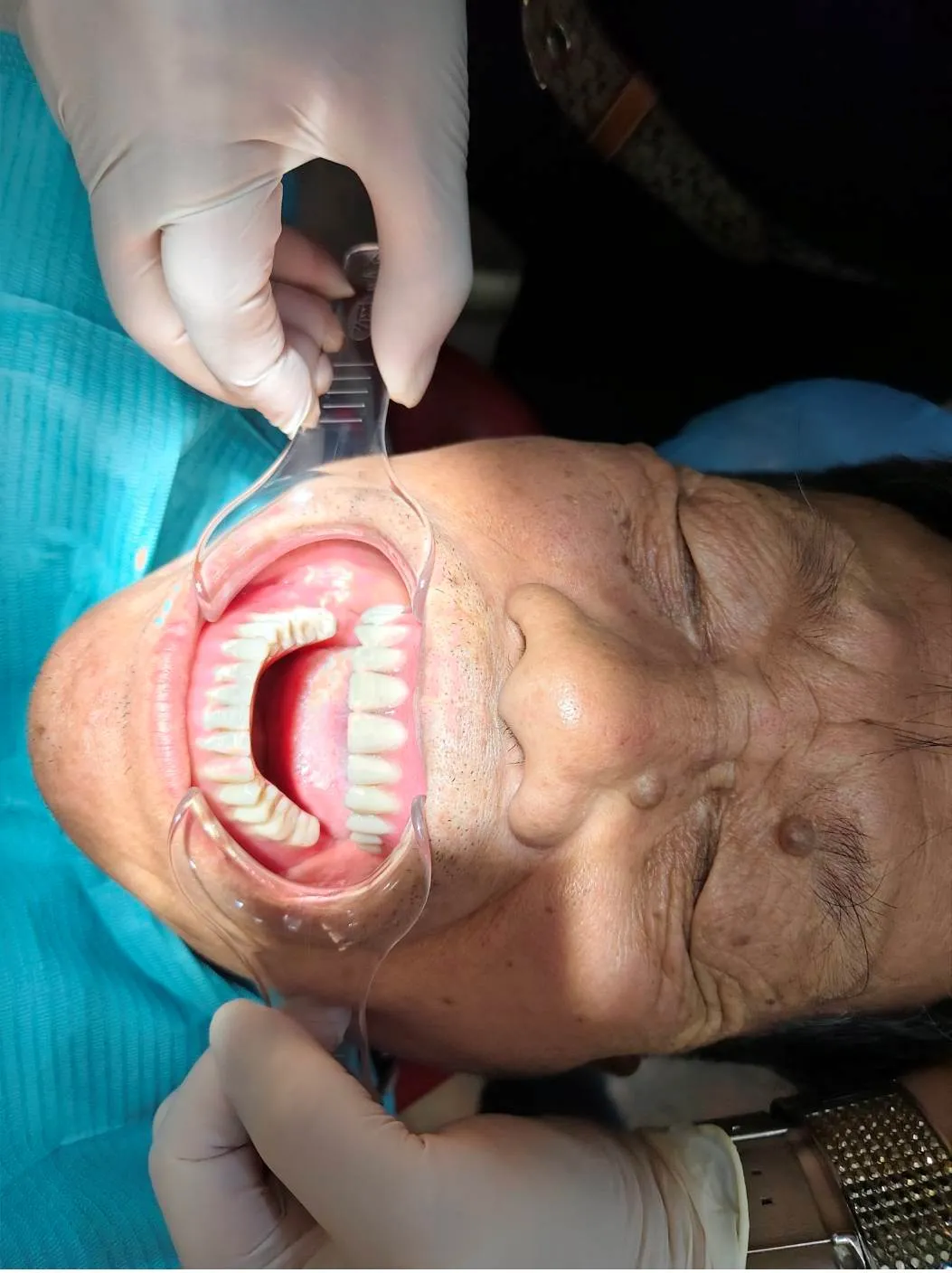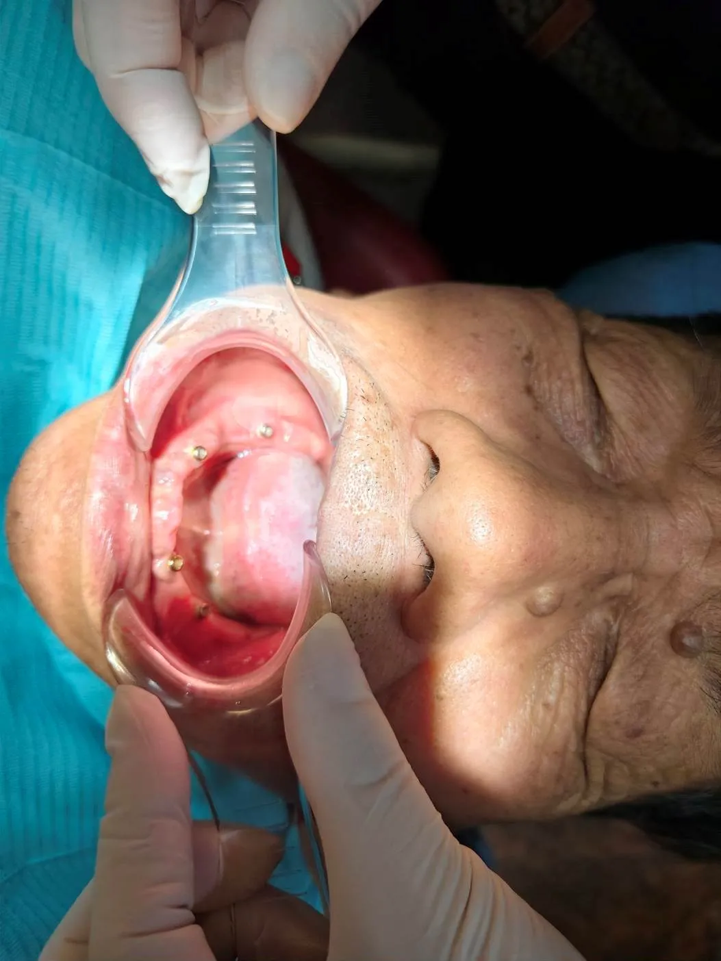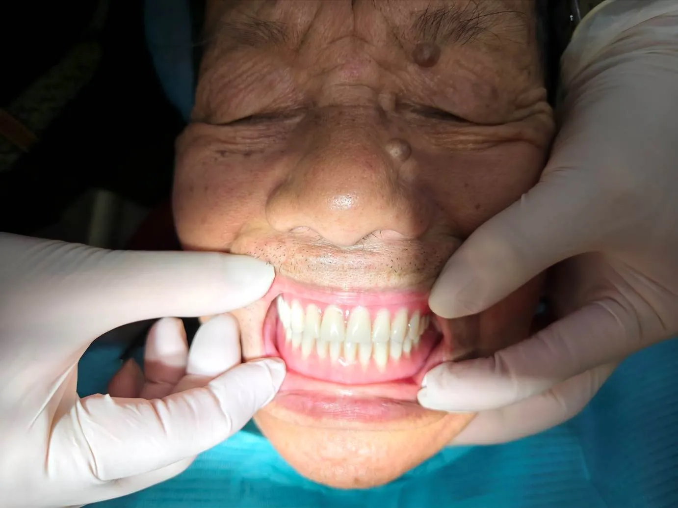 本人全口無牙齒,上顎下顎都是,下顎實在很不方便,舌頭一動假牙也跟著動,楊醫師說下面無牙是上面無牙難過的二十倍,我聽了楊醫師的建議,下顎植牙四顆,現在真的能吃芭樂了,以前沒有植牙時真的沒辦法。