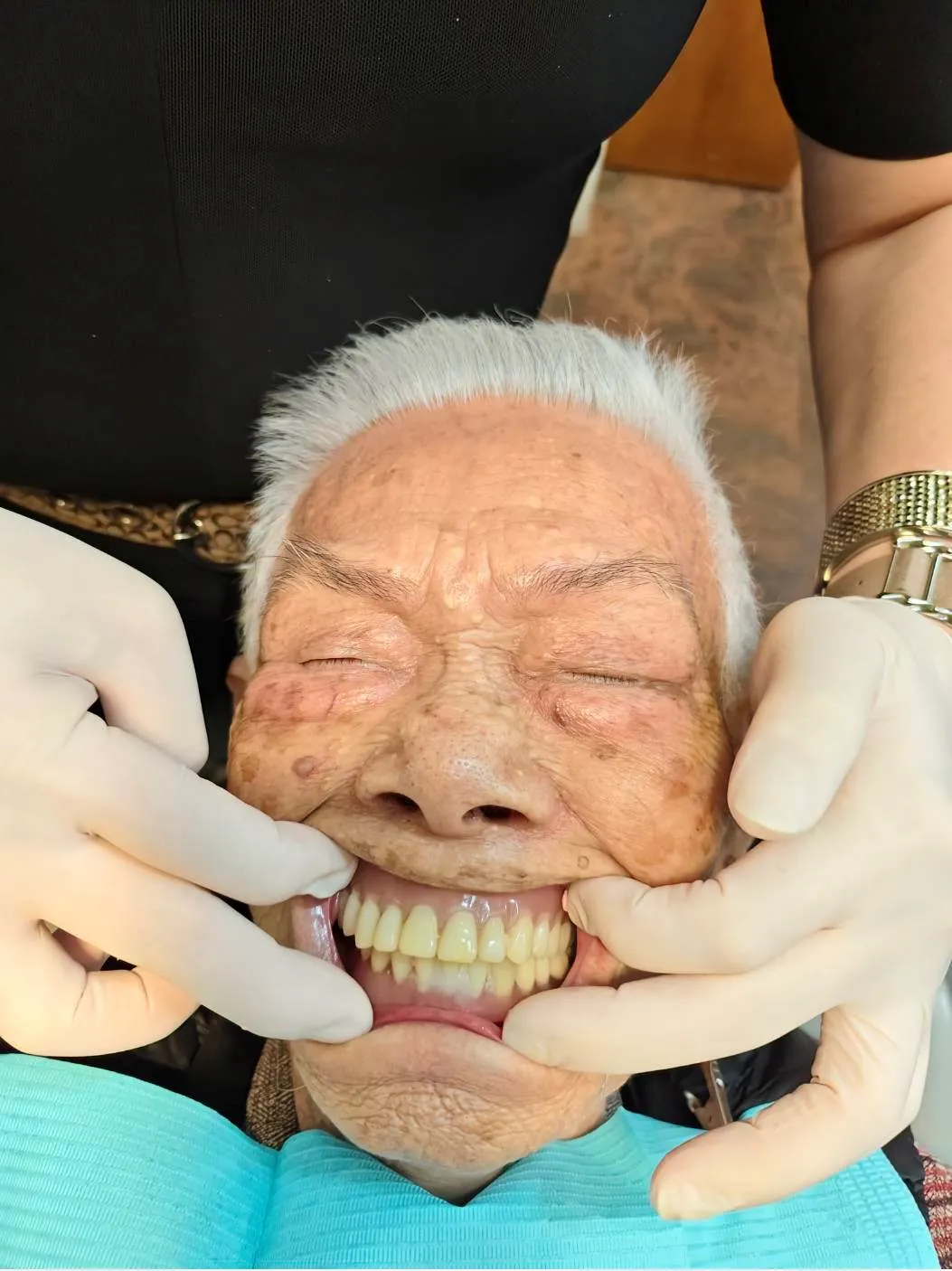 我是阿鳳的媳婦,帶著婆婆來看楊醫師,婆婆現已98歲,經過楊醫師保留下面唯一一顆牙齒,做成磁鐵,感謝醫師現在吃東西方便多了,不用一直吃粥,吃飯吃菜也都沒問題了,婆婆才有營養,她的媽媽也活到104歲,我想我婆婆也可以。